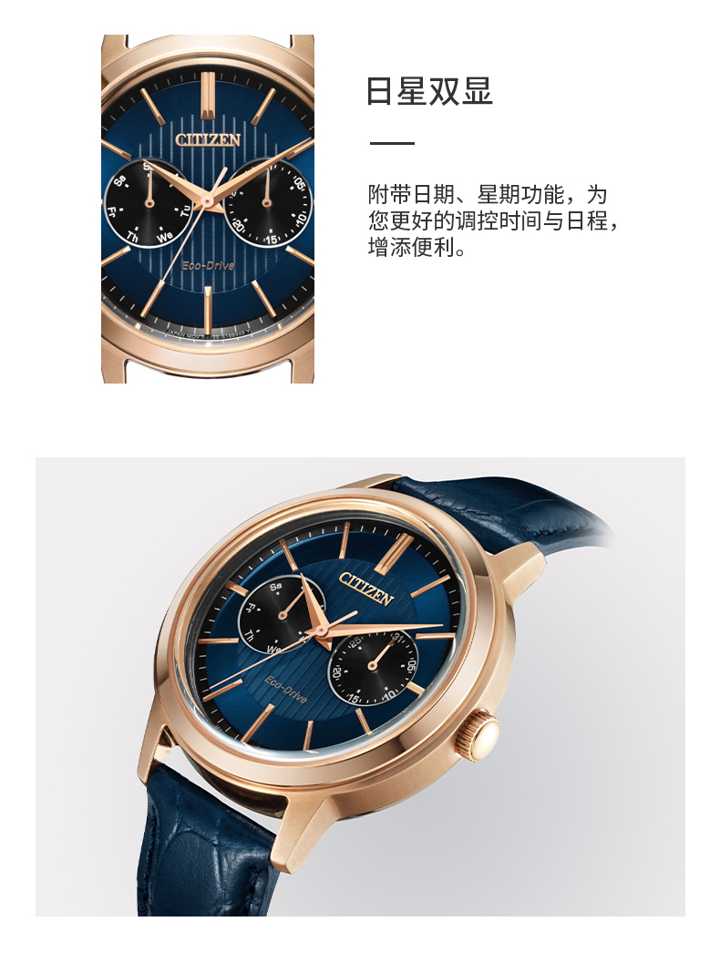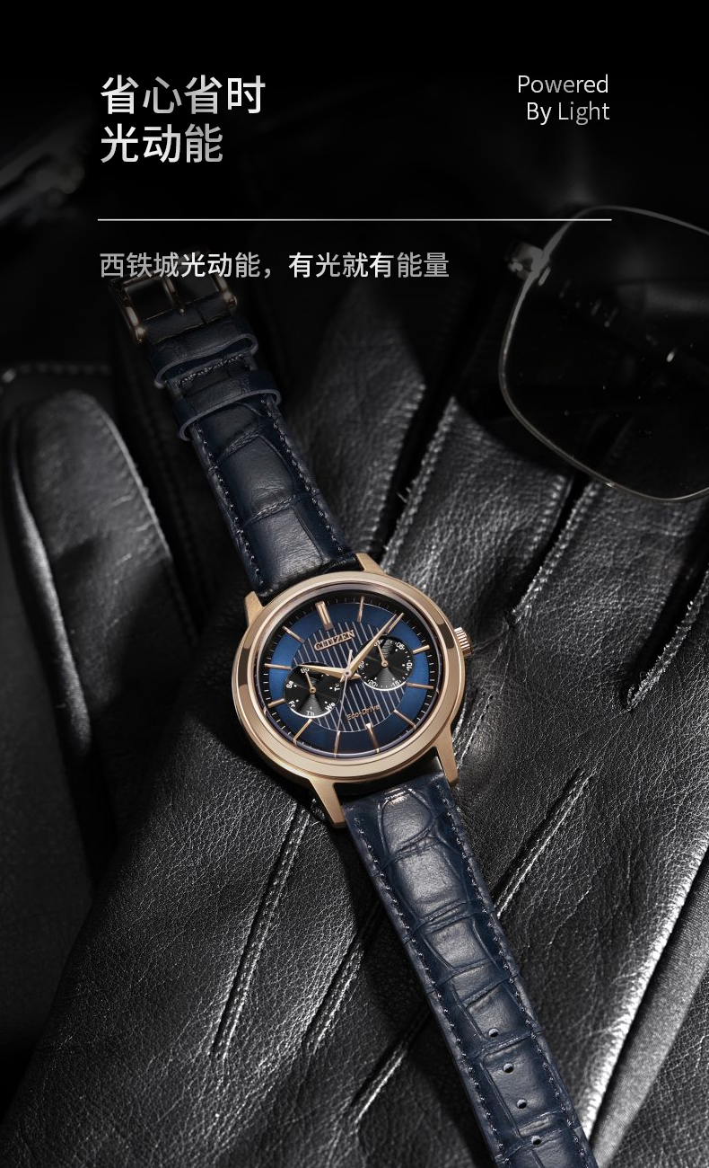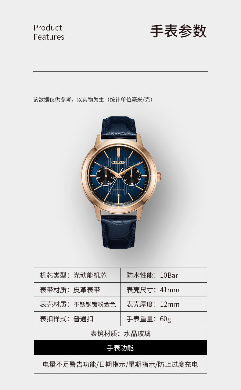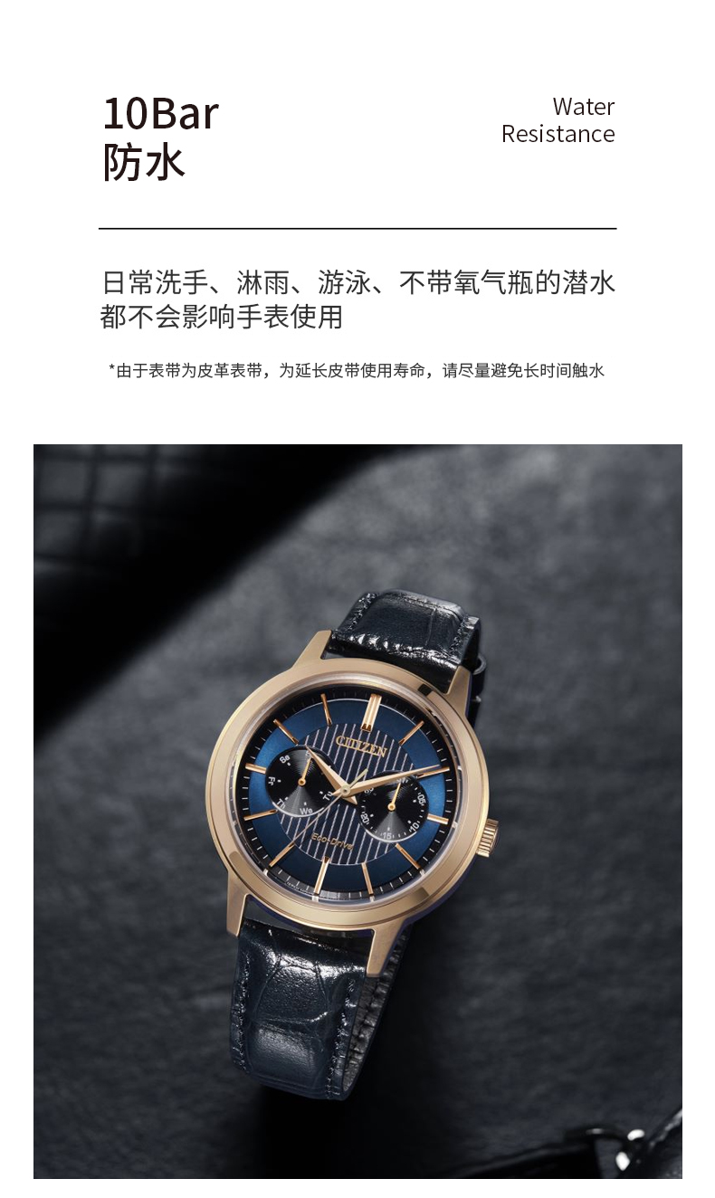 Citizen西铁城 光动能手表时尚商务复古日期显示男表BU4033-18L 蓝色