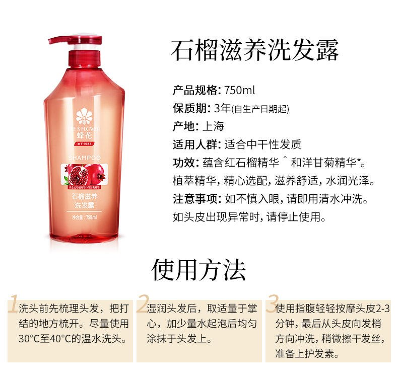 蜂花石榴滋养洗发露750ml+小麦蛋白护发素1L*2(单位:瓶) 莓果色