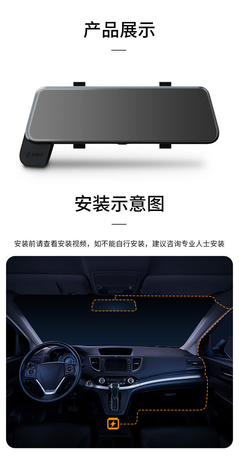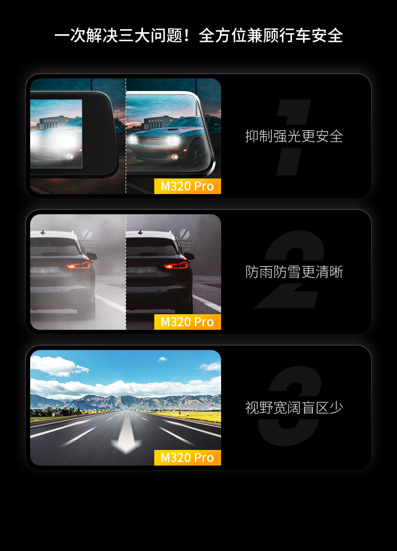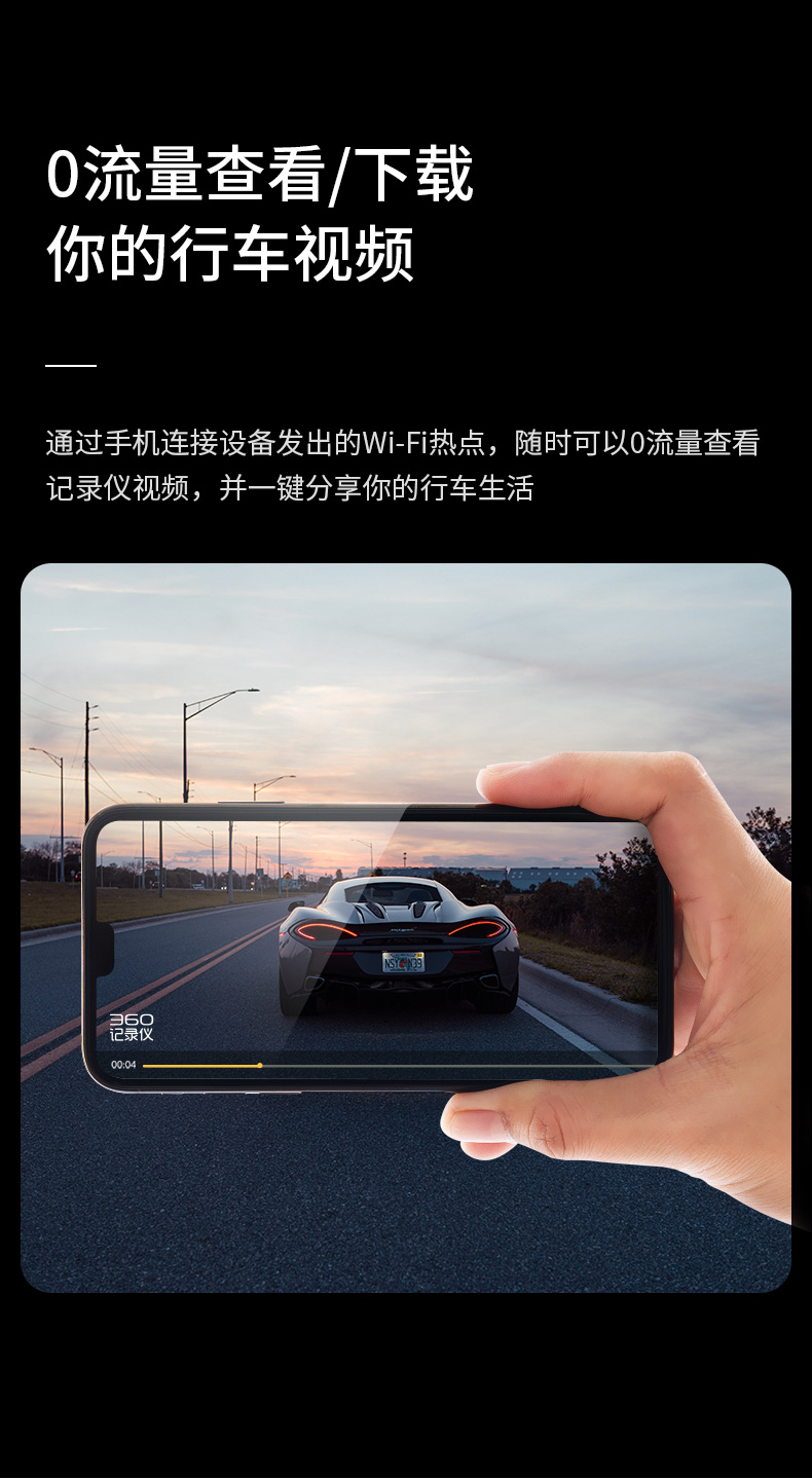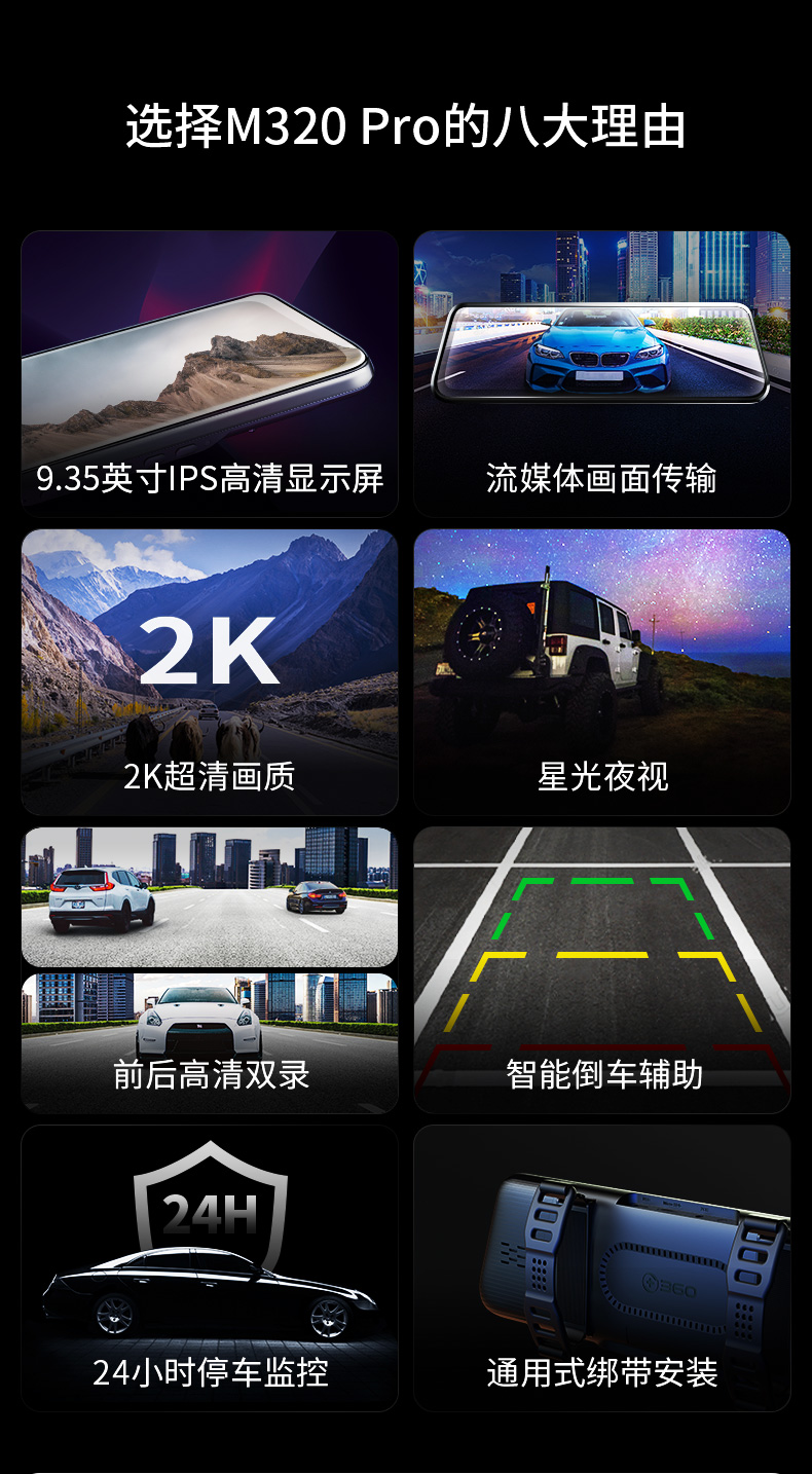 360行车记录仪M320pro触摸屏前后双镜头录摄高清停车监控 黑色