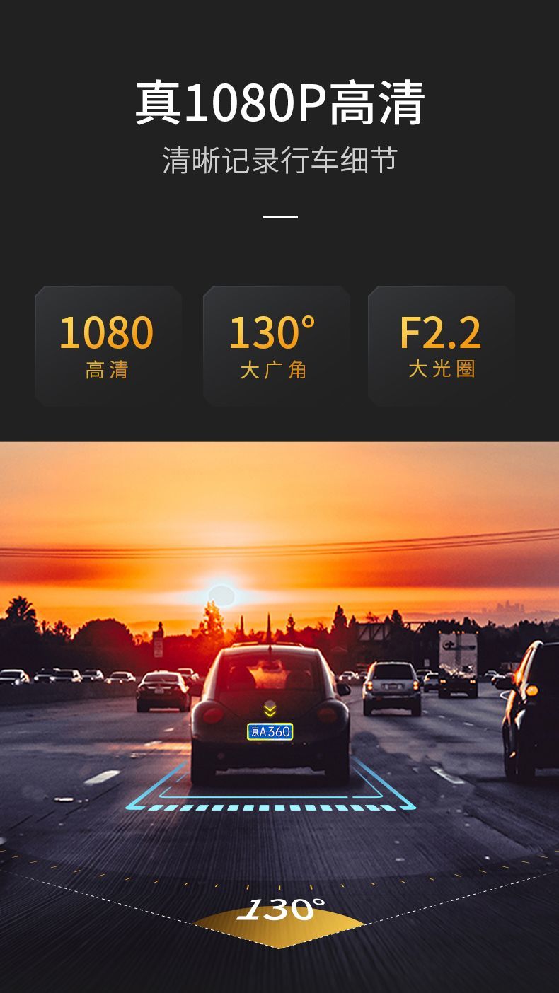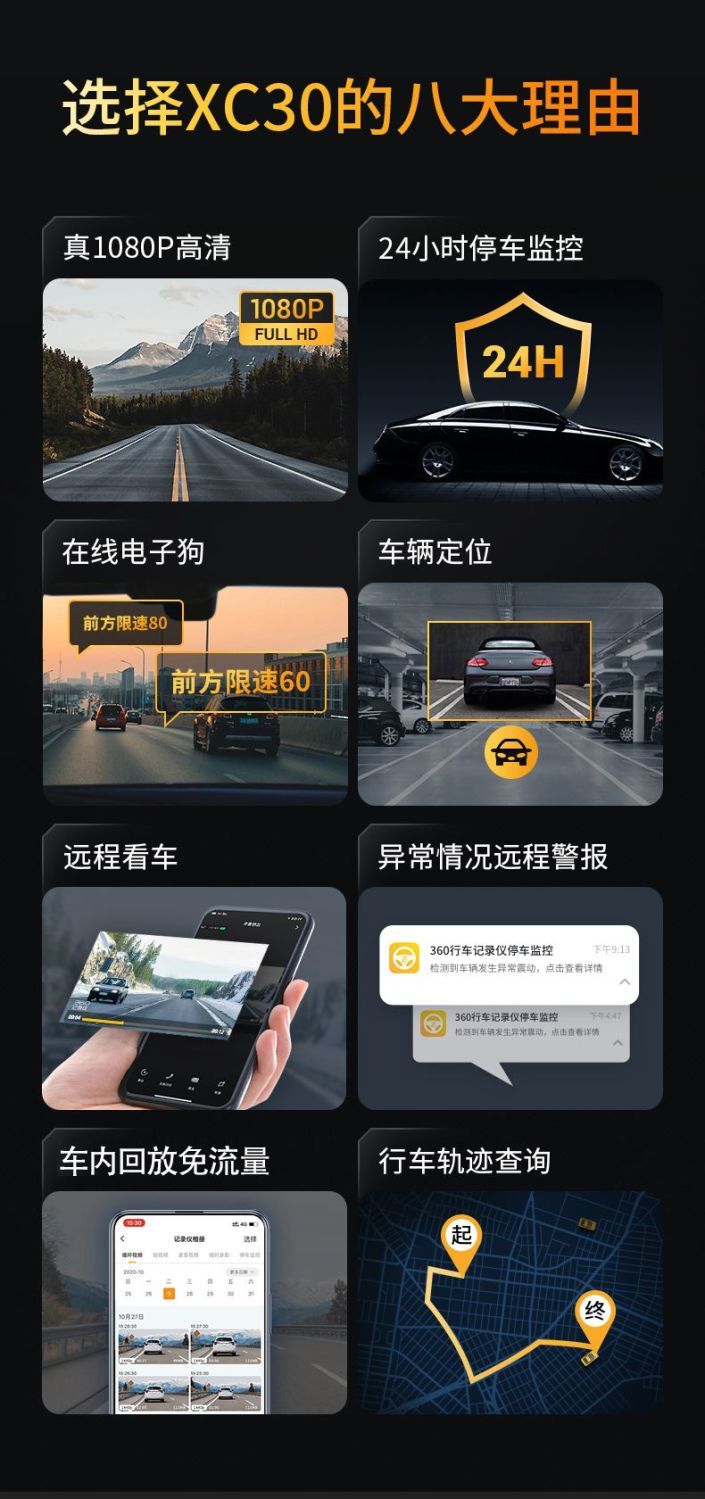 360行车记录仪XC30高清远程监控GPS定位查车wifi无线云电子狗 黑色