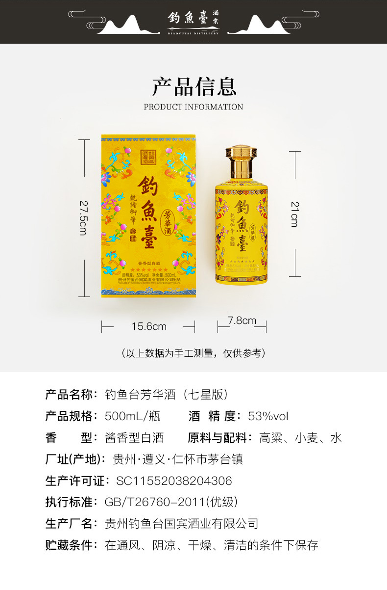 钓鱼台 芳华酒(七星版) 53度酱香型白酒 500ml 单瓶装