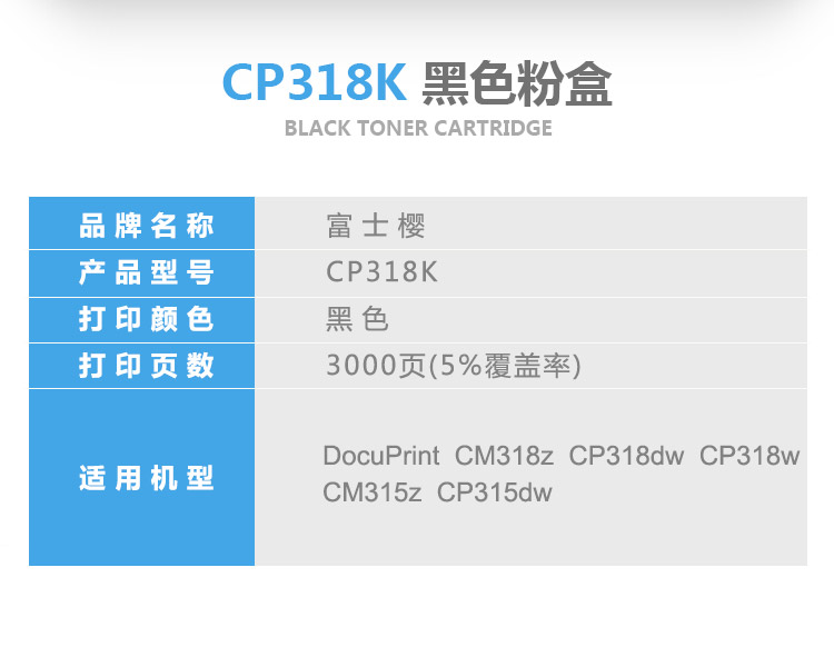 富士樱 CP318K 黑色墨粉盒 适用施乐CM318z CP318dw CP318w CM315z 黑色