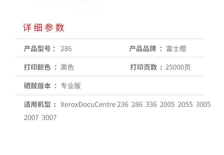 富士樱 286 黑色墨粉盒 适用施乐236/286/336/2005/2055/3005/2007 黑色
