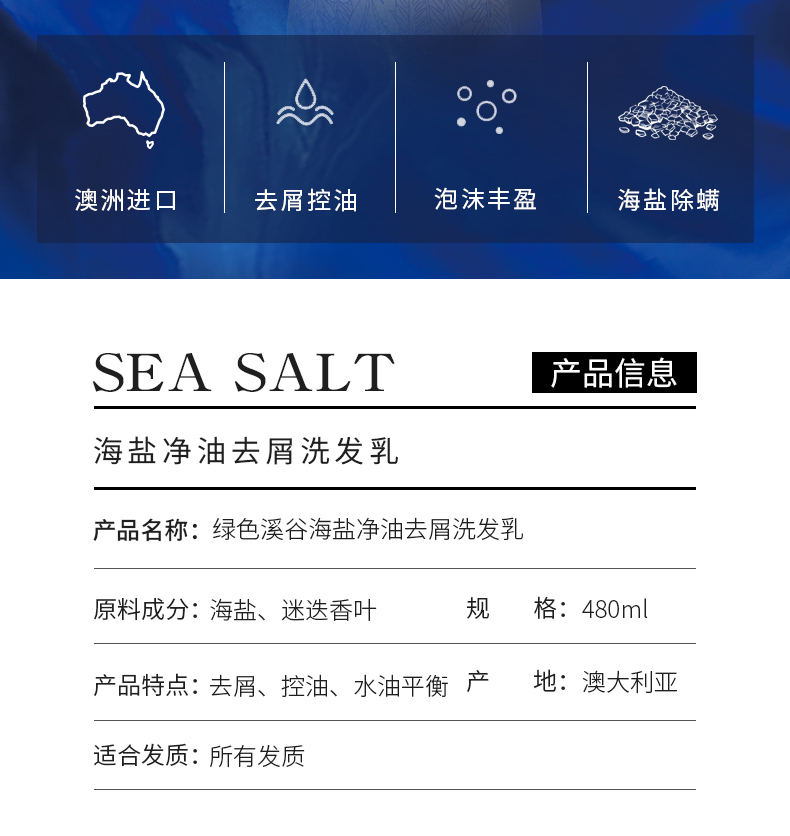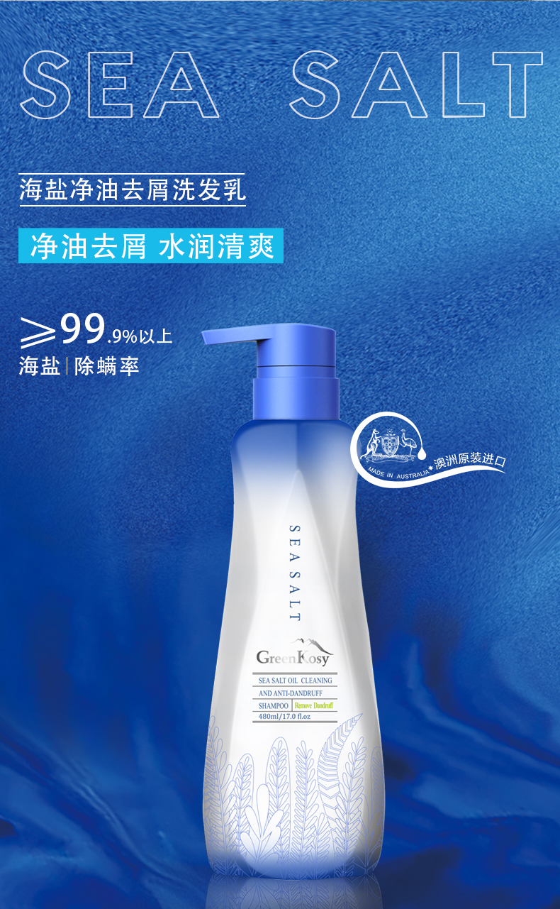 绿色溪谷(GREENKOSY)海盐净油去屑洗发乳480ml (单位:瓶)宝石蓝