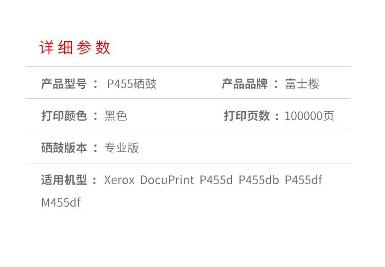 富士樱 P455D 硒鼓 适用富士施乐P455d P455db P455df M455df 黑色