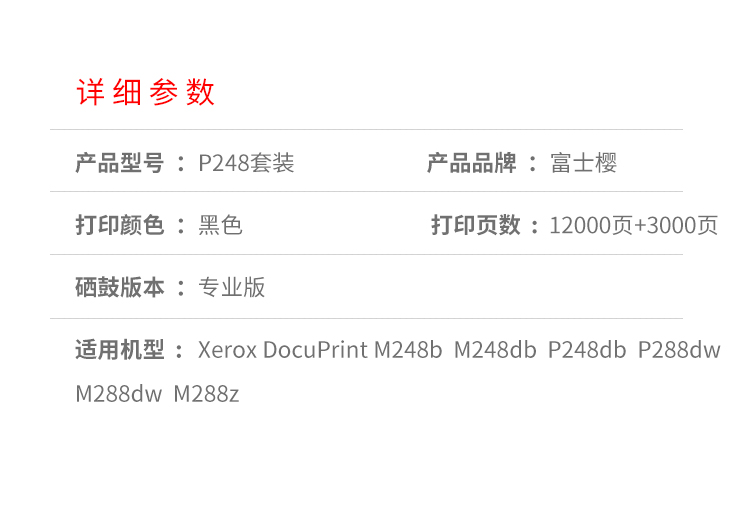 富士樱 M288dw/z粉盒硒鼓套装适用富士施乐DocuPrint M/P248dp P288dw 黑色