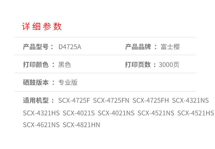 富士樱 SCX-D4725A 黑色硒鼓 适用三星SCX-4725F/FN/FH 4321NS/HS 黑色