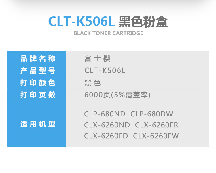 富士樱 CLT-K506L 黑色大容量墨粉盒 K506S适用三星硒鼓CLP-680ND 680DW 黑色