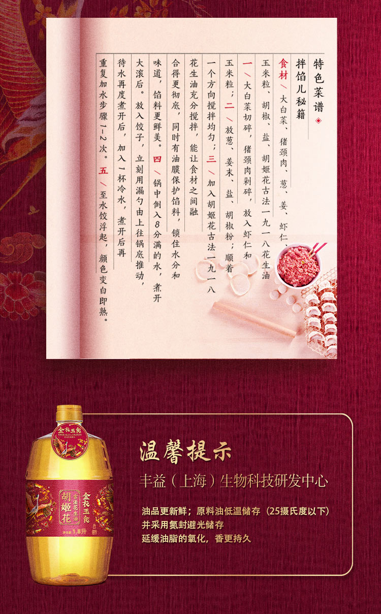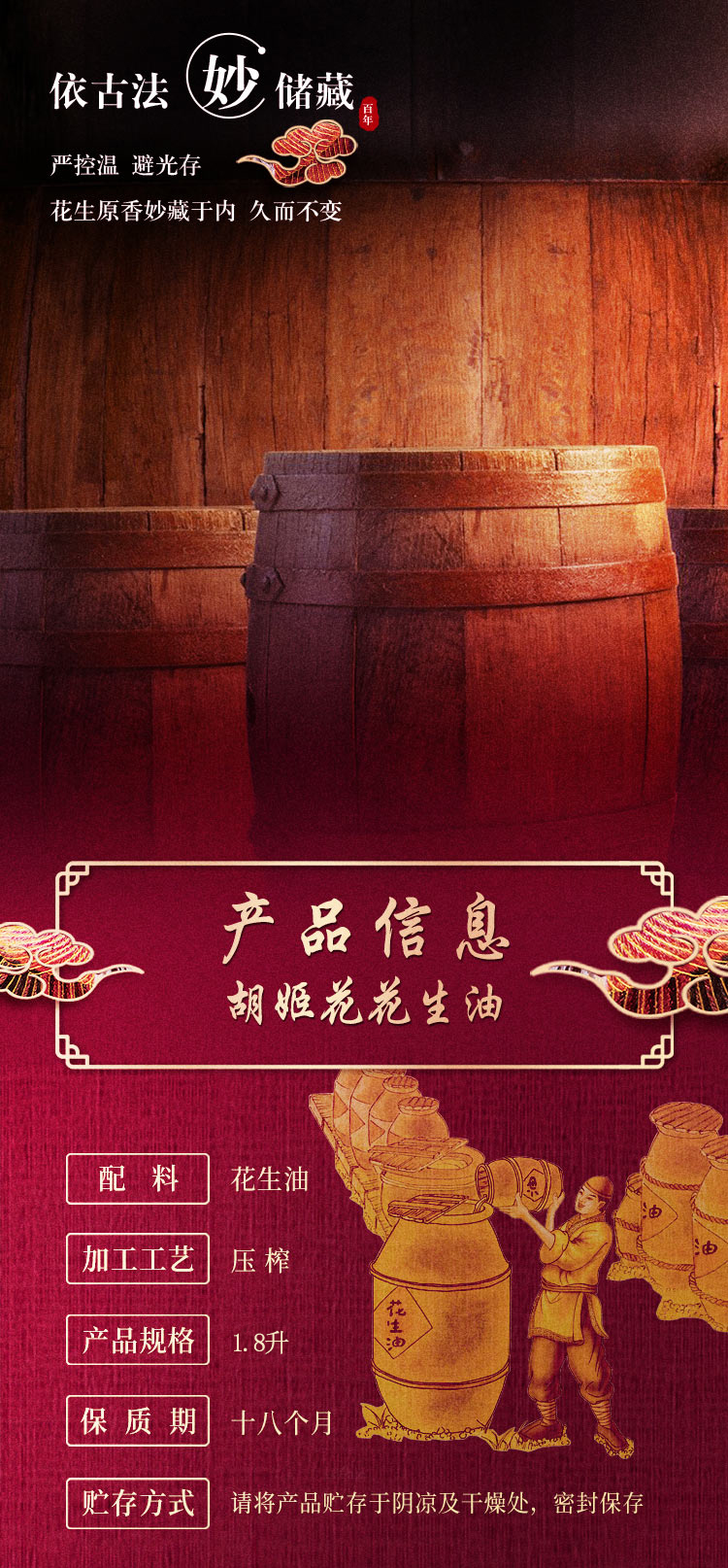 胡姬花金衣玉食花生油1.8L*1瓶 粉红色