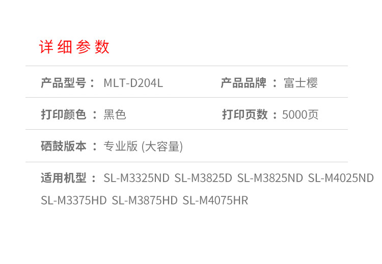 富士樱 MLT-D204L 墨粉盒 D204S适用三星SL-M3325ND M3825D M4025 黑色