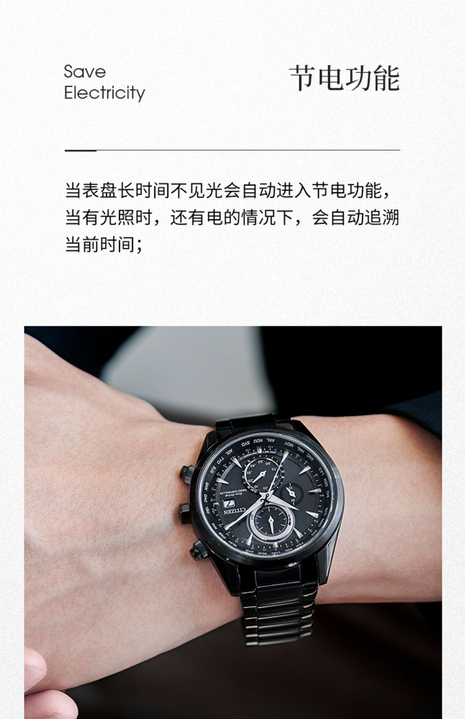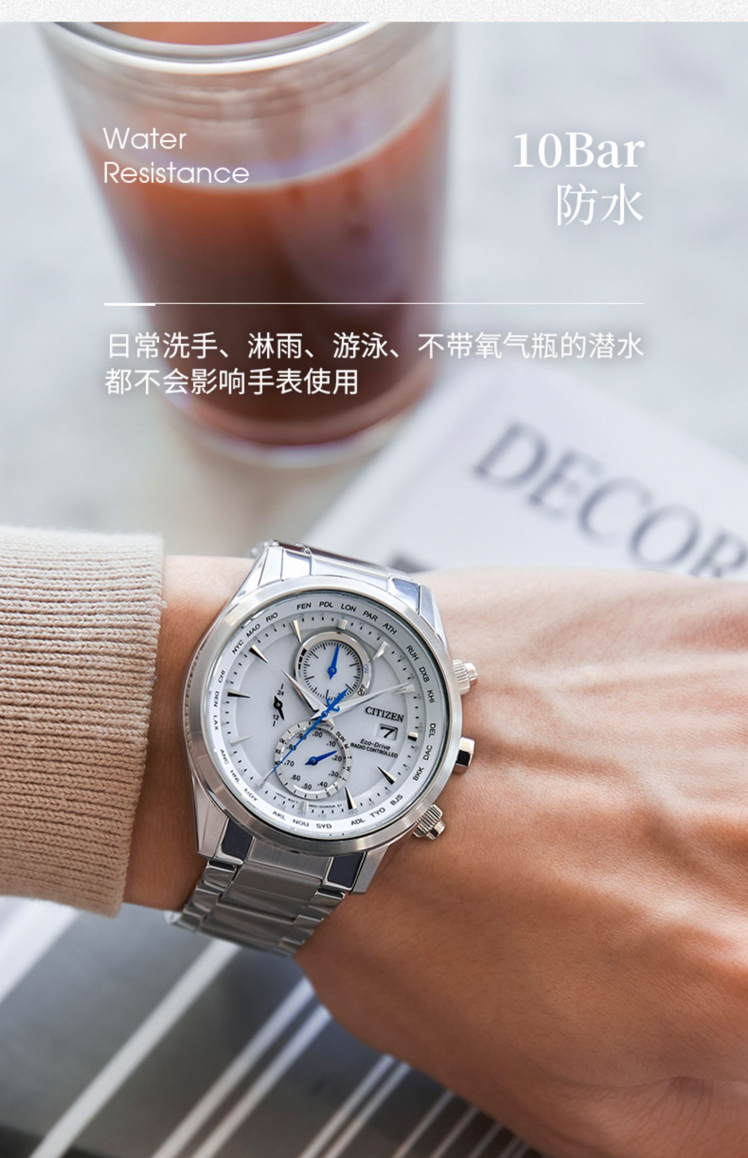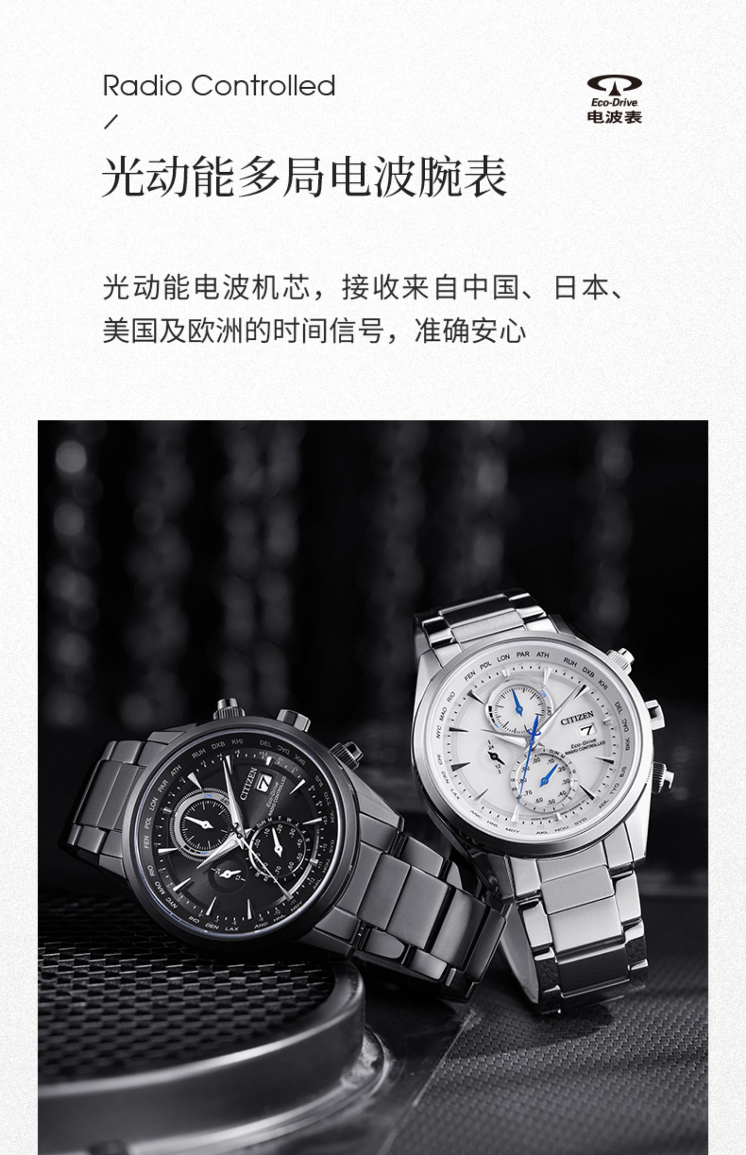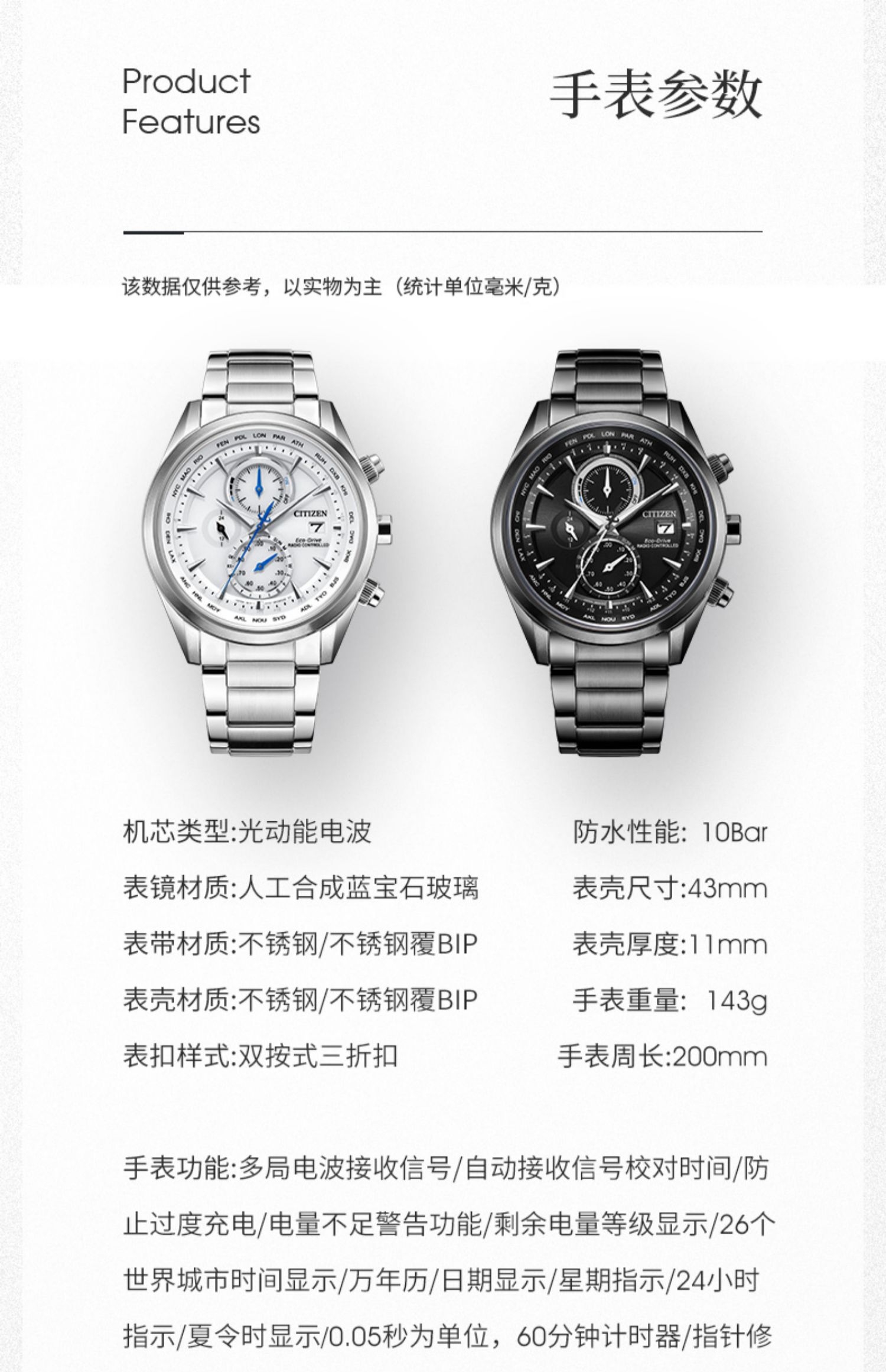Citizen西铁城 空中之鹰系列 光动能电波手表白盘钢带男表AT8260-85A(单位:块) 白色