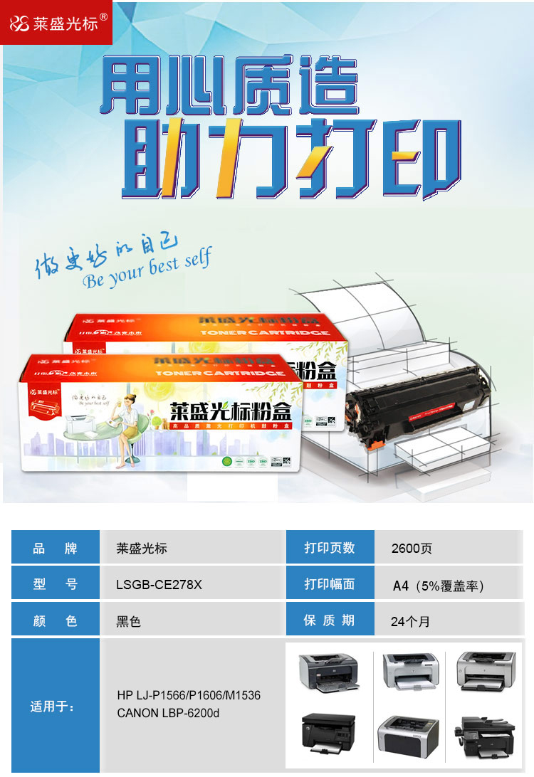 莱盛光标 LSGB-CE278X 激光打印机粉盒高容 黑色 全新 有芯片 2.6K 12支/箱 黑色