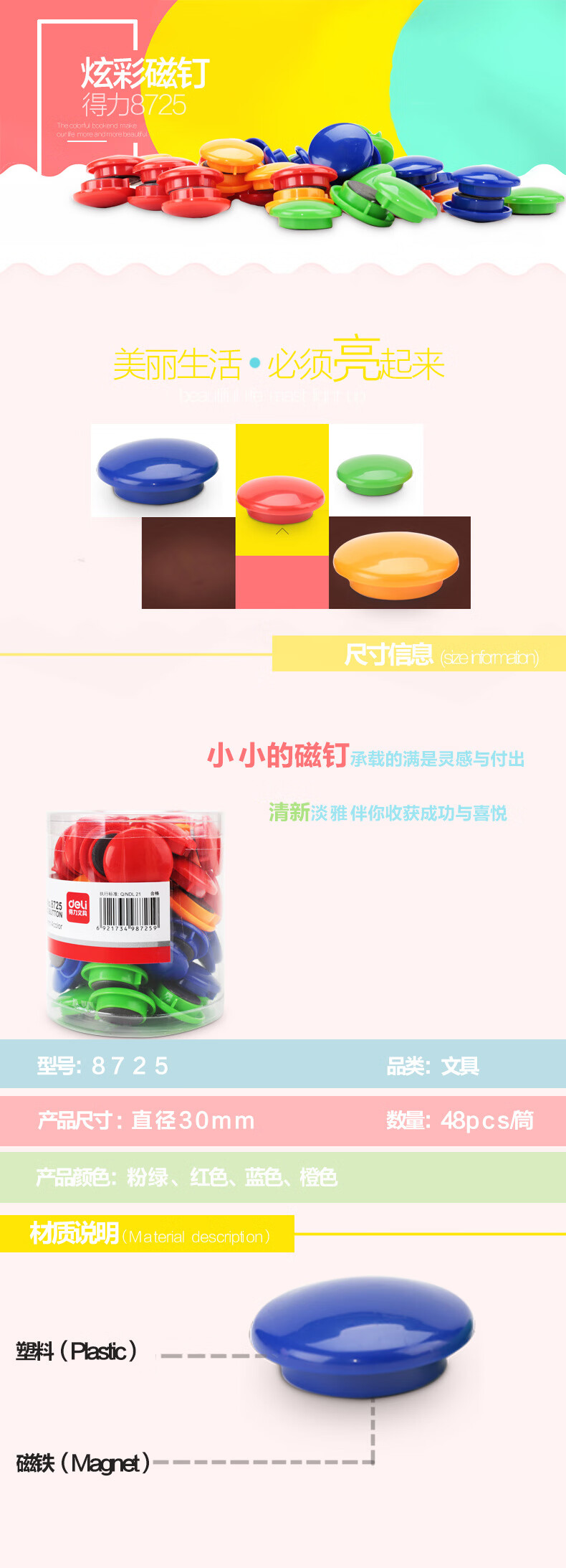 得力8725筒装磁钉φ30mm(混)(48粒/筒) 混色