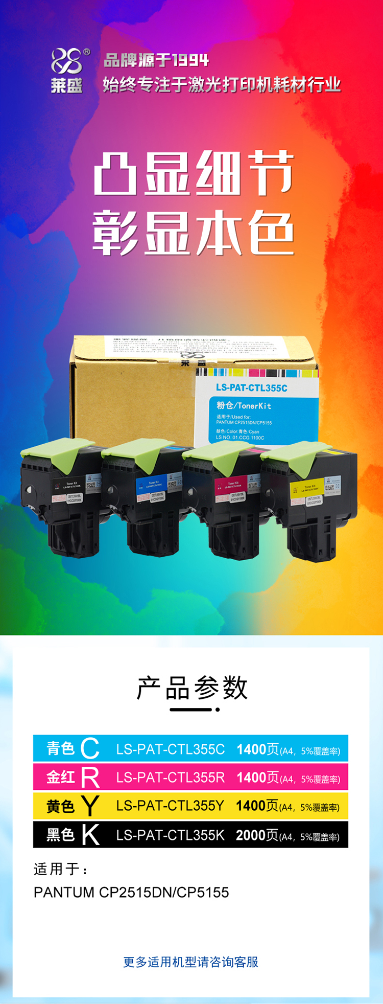 莱盛 LS-PAT-CTL355R 粉仓 金光红 全新 有芯片 1.4K 40支/箱 黑色