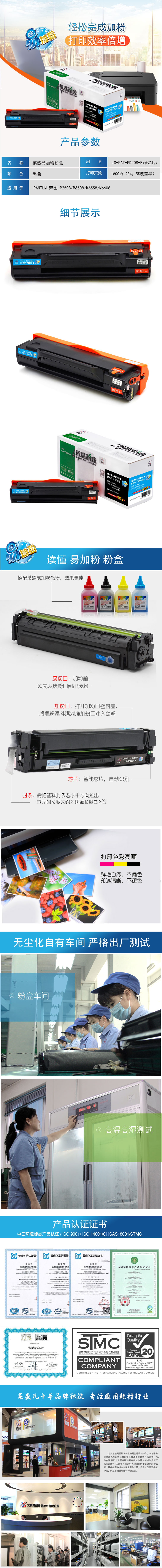 莱盛 LS-PAT-PD208-E 激光打印机粉盒易加粉 黑色 全新 有芯片 1.6K 12支/箱 黑色