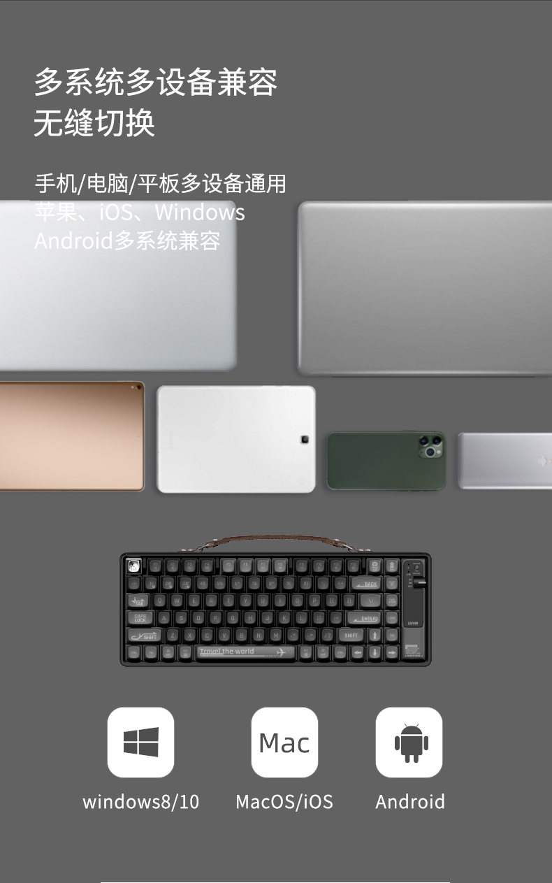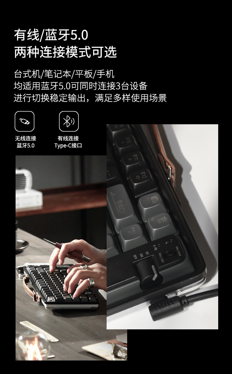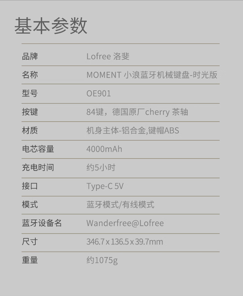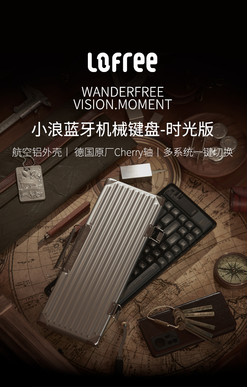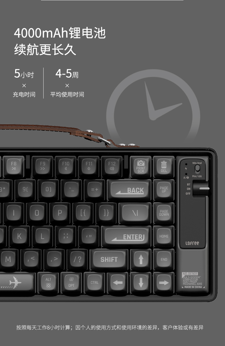 LOFREE 洛斐小浪时光版无线蓝牙键盘机械键盘全键无冲磁吸盖防尘键盘帽 小浪键盘-时光版 黑色