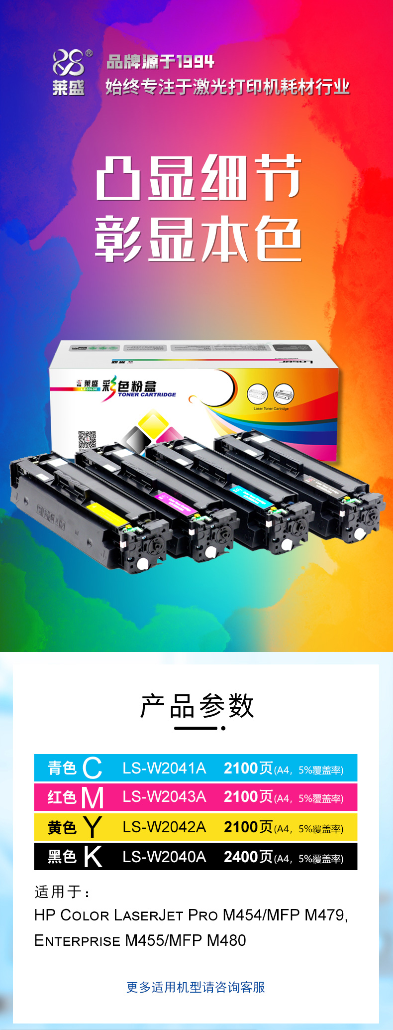 莱盛 LS-W2040A 彩色激光打印机粉盒 黑色 全新 有芯片 2.4K 12支/箱 黑色