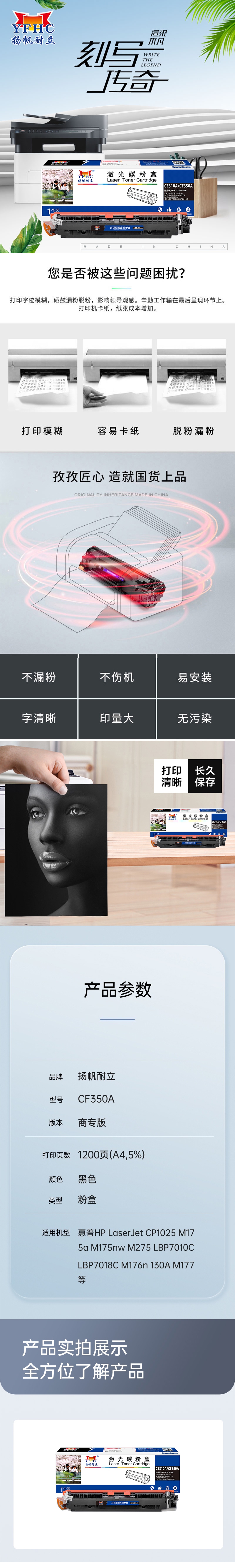 扬帆耐立(YFHC) CF350A 1200页 适用惠普HP M176n 130A M177 墨粉盒 (计价单位:只) 黑色 黑色