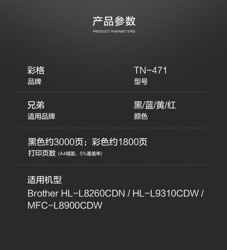 彩格 TN-471C标准容量打印量1800页适用兄弟BrotherHL-L8260CDN;HL-L9310CDW打印机 硒鼓 1.00 只/支 (计价单位:支) 蓝色 蓝色