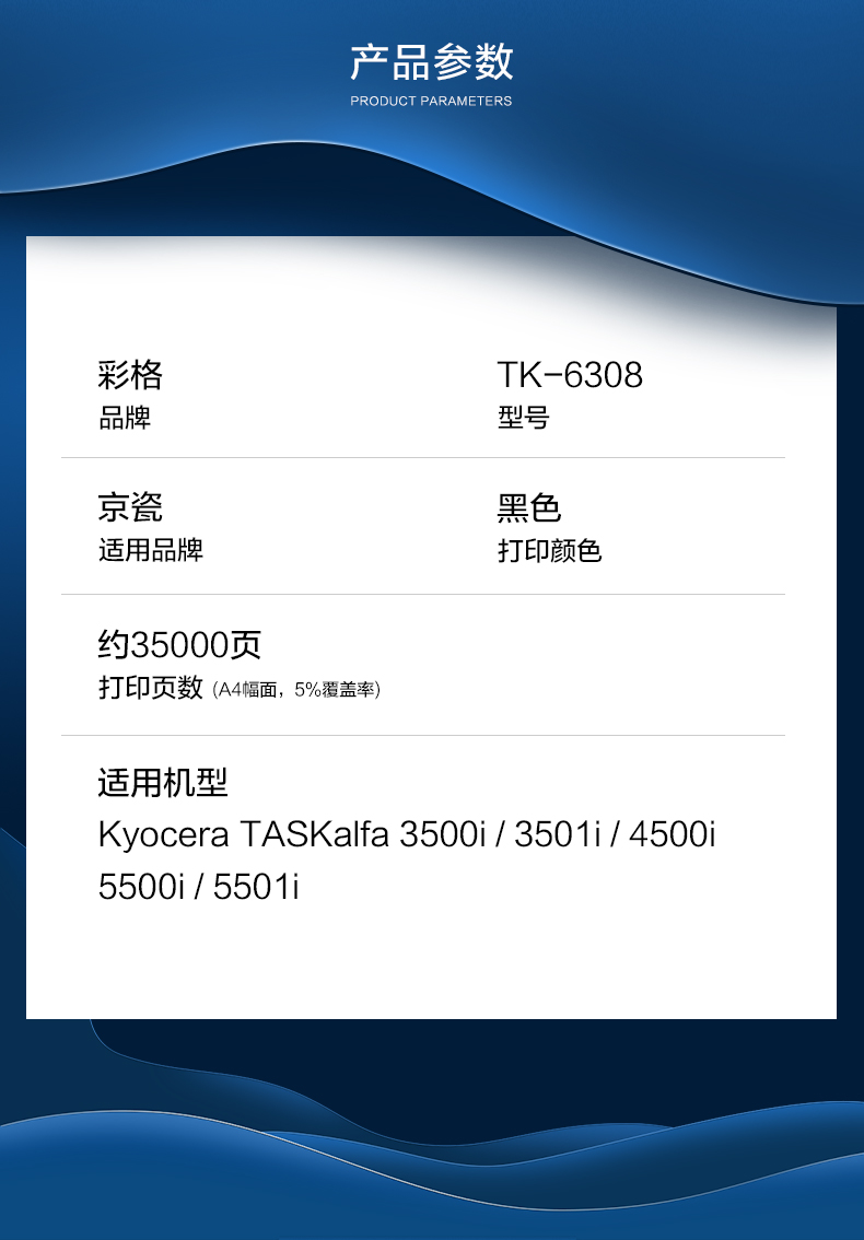 彩格 TK-6308高容量打印量35000页适用京瓷KyoceraTASKlafa3500i;4500i;5500i打印机 硒鼓 1.00 只/支 (计价单位:支) 黑色 黑色