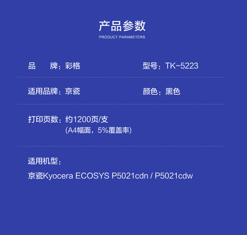 彩格 TK-5223K标准容量打印量1200页适用京瓷KyoceraECOSYSP5021cdn;P5021cdw打印机 硒鼓 1.00 只/支 (计价单位:支) 黑色 黑色