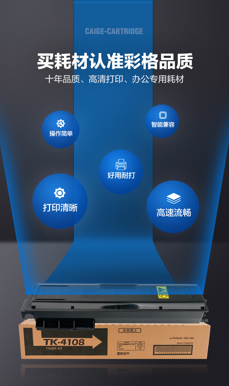 彩格 TK-4108高容量打印量7200页适用京瓷KyoceraTASKalfa1800;1801打印机 硒鼓 1.00 只/支 (计价单位:支) 黑色 黑色