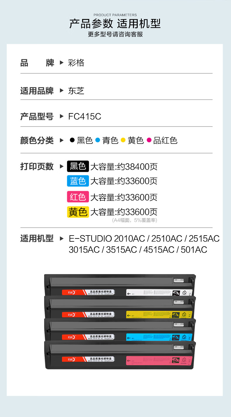 彩格 T-FC415C高容量打印量38400页适用东芝TOSHIBAFC-2010AC;FC-3015AC打印机 硒鼓 1.00 只/支 (计价单位:支) 黑色 黑色