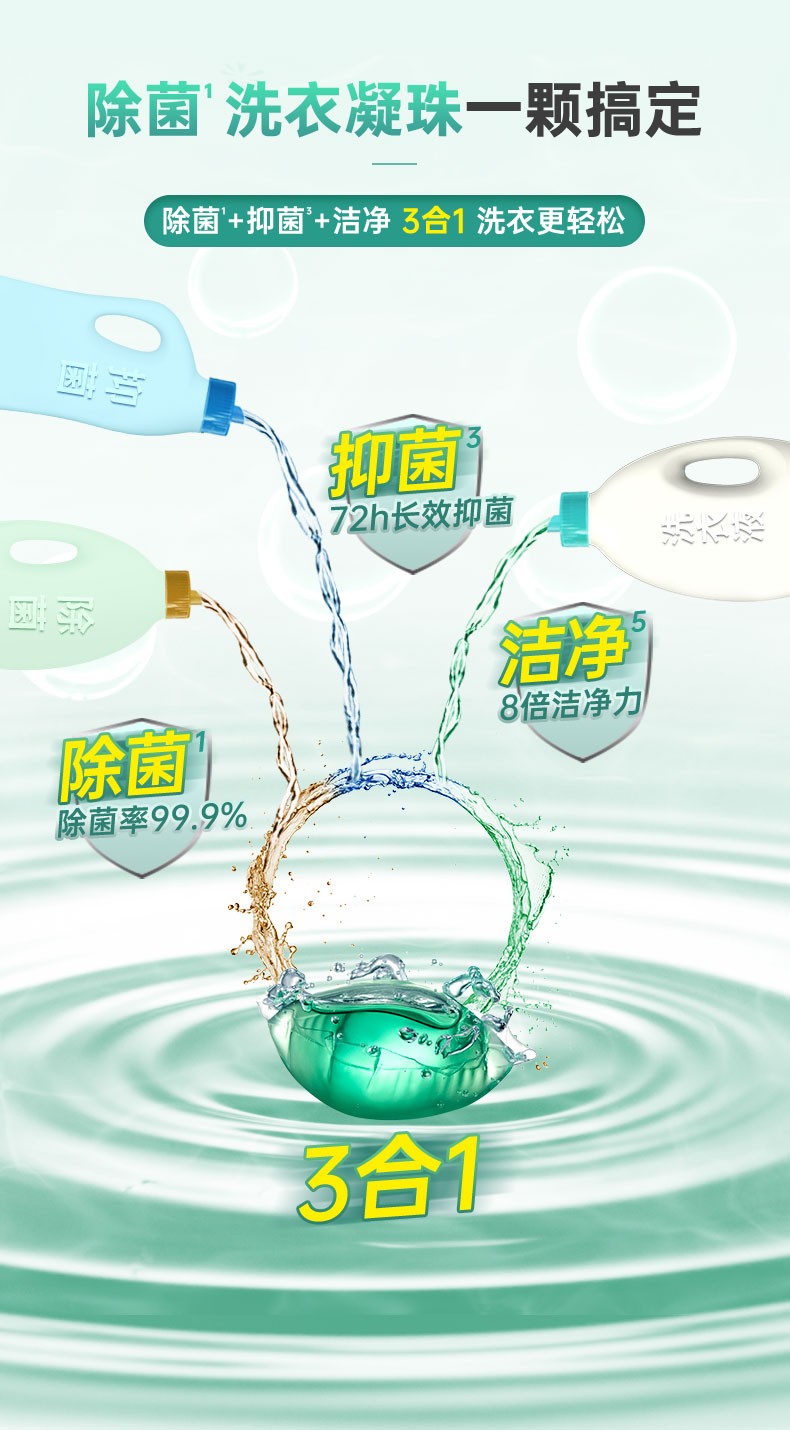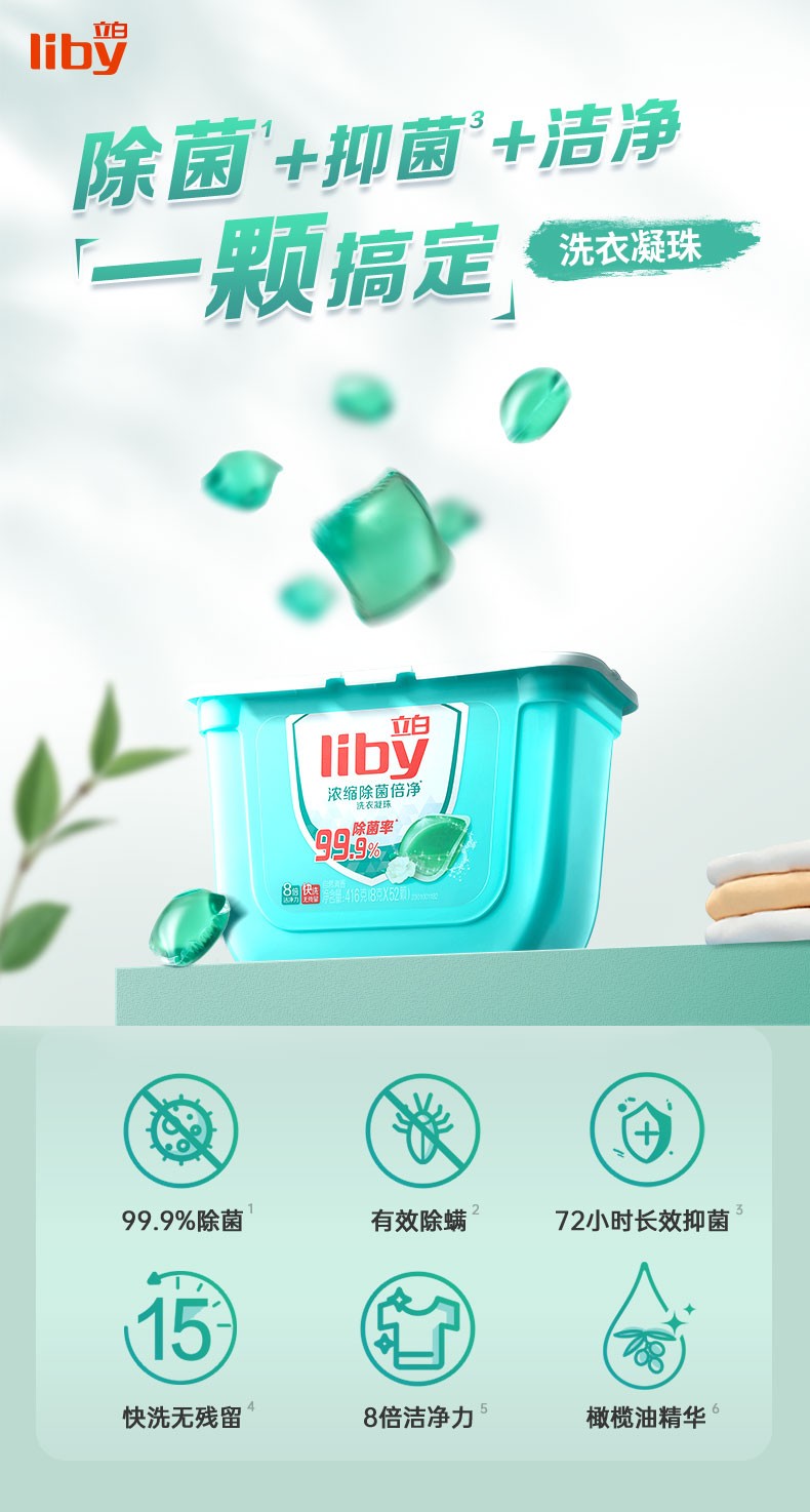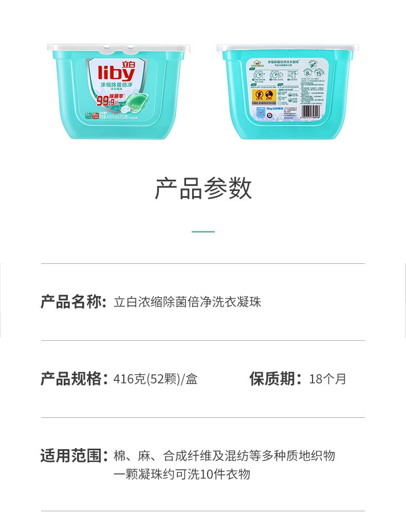 立白浓缩除菌倍净洗衣凝珠416克(8克×52颗) 6920174758948(单位:盒) 绿色