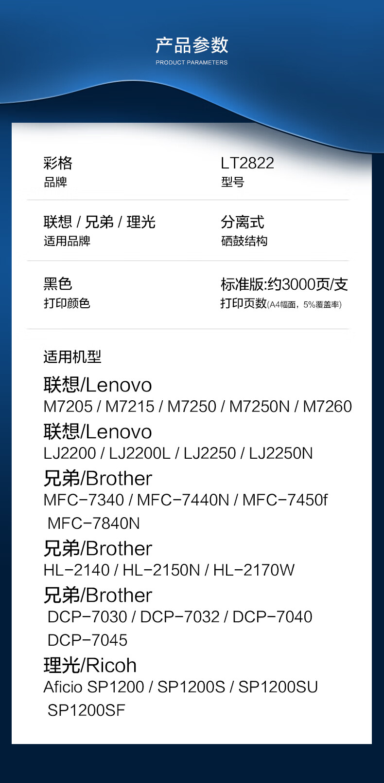 彩格 LT2822标准版 打印量2600页 适用联想M7205 7250 LJ2200L 碳粉盒 1.00 只/支 (计价单位:支) 黑色 黑色