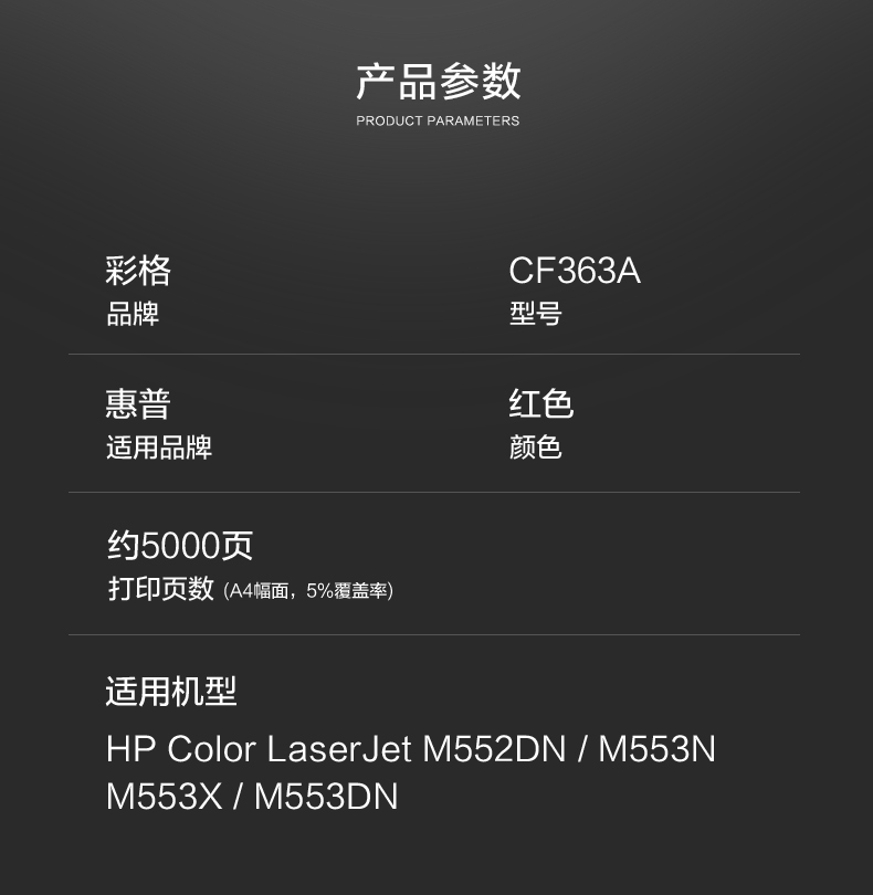 彩格 CF360A 打印量6000页 适用惠普M553N M553DN M553X 碳粉盒 1.00 只/支 (计价单位:支) 黑色 黑色