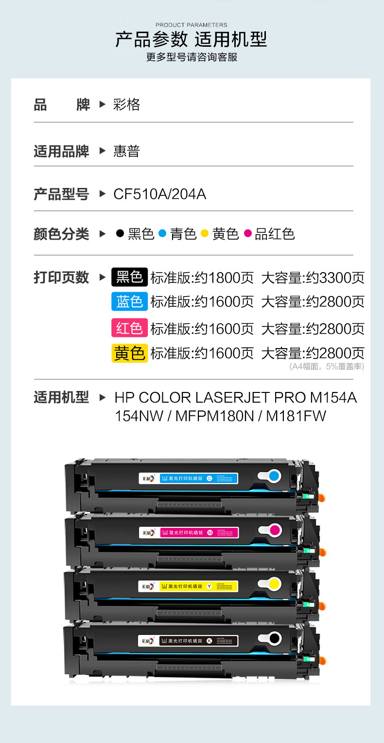 彩格 CF512A带芯片 打印量2800页 适用于惠普M154a M154nw 碳粉盒 1.00 只/支 (计价单位:支) 黄色 黄色