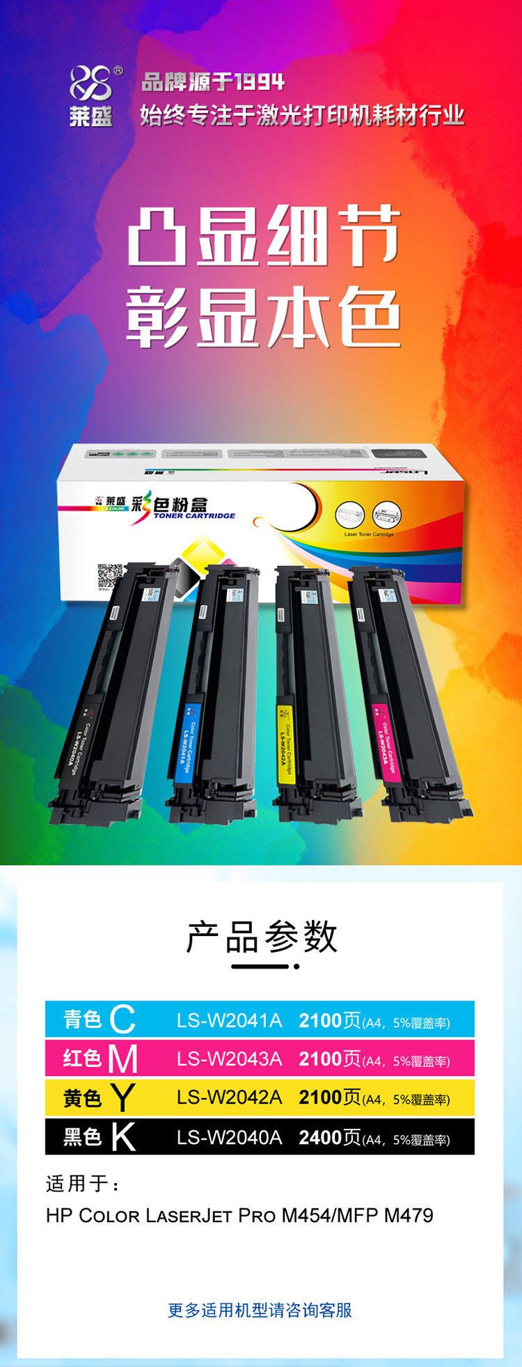 莱盛 LS-W2042A 彩色激光打印机粉盒 黄色 全新 有芯片 2.1K 12支/箱 黄色