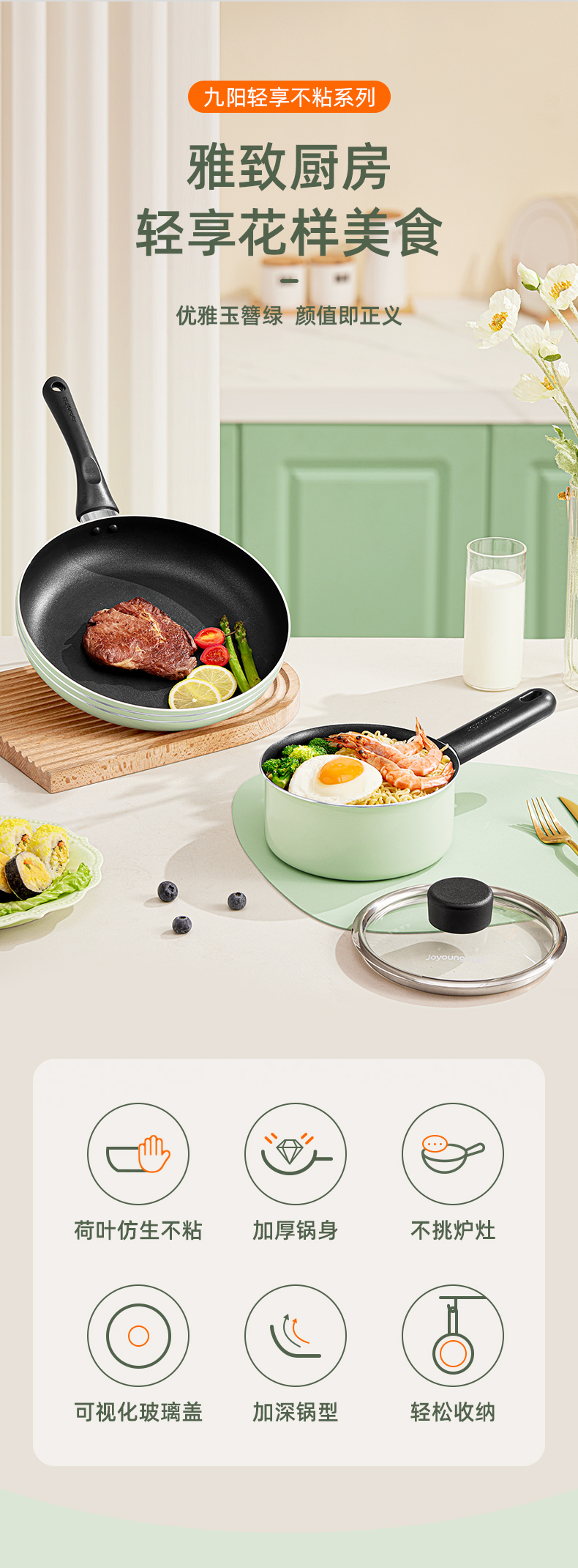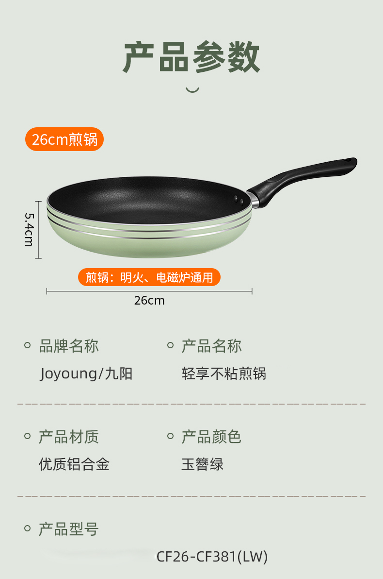 九阳(Joyoung) 不粘煎锅 CF26-CF381(LW) 26cm 玉簪绿(单位:个)