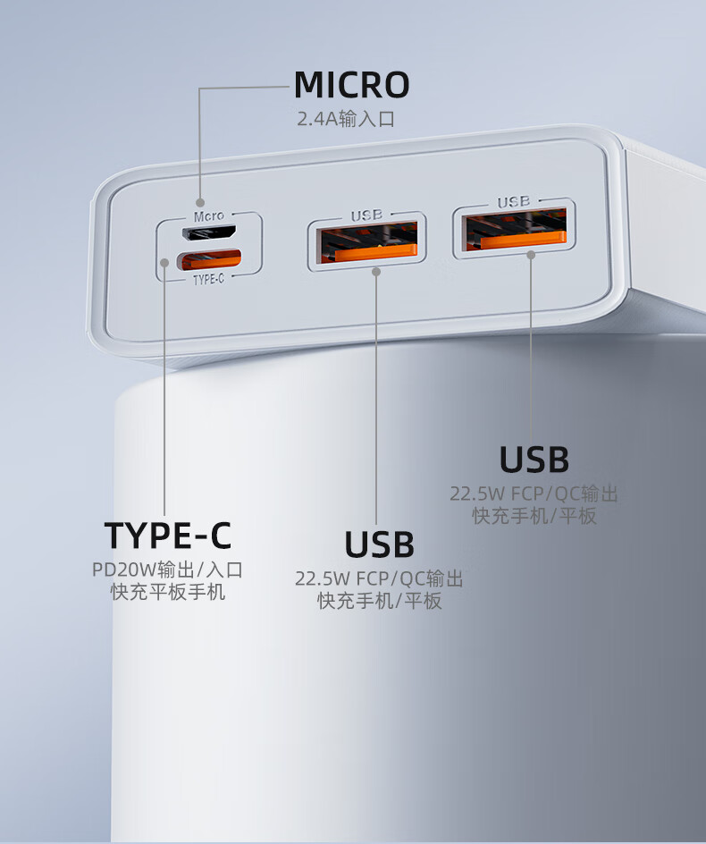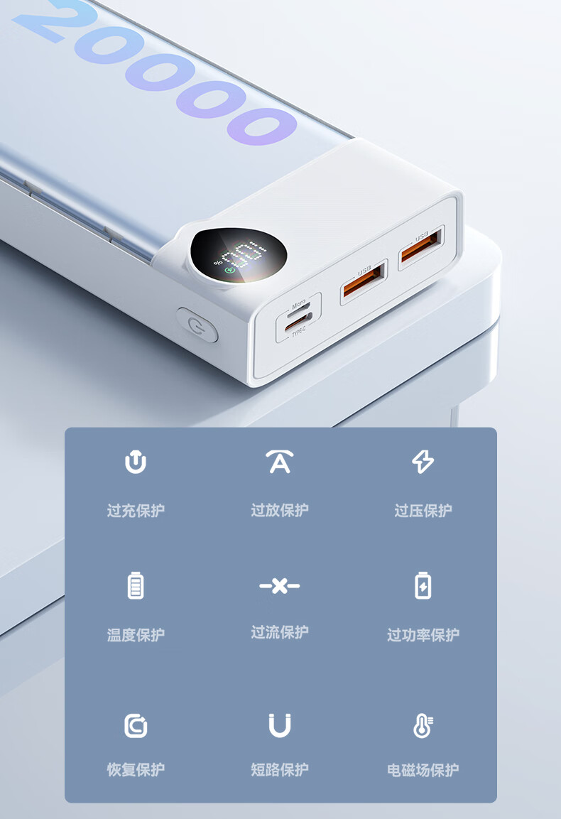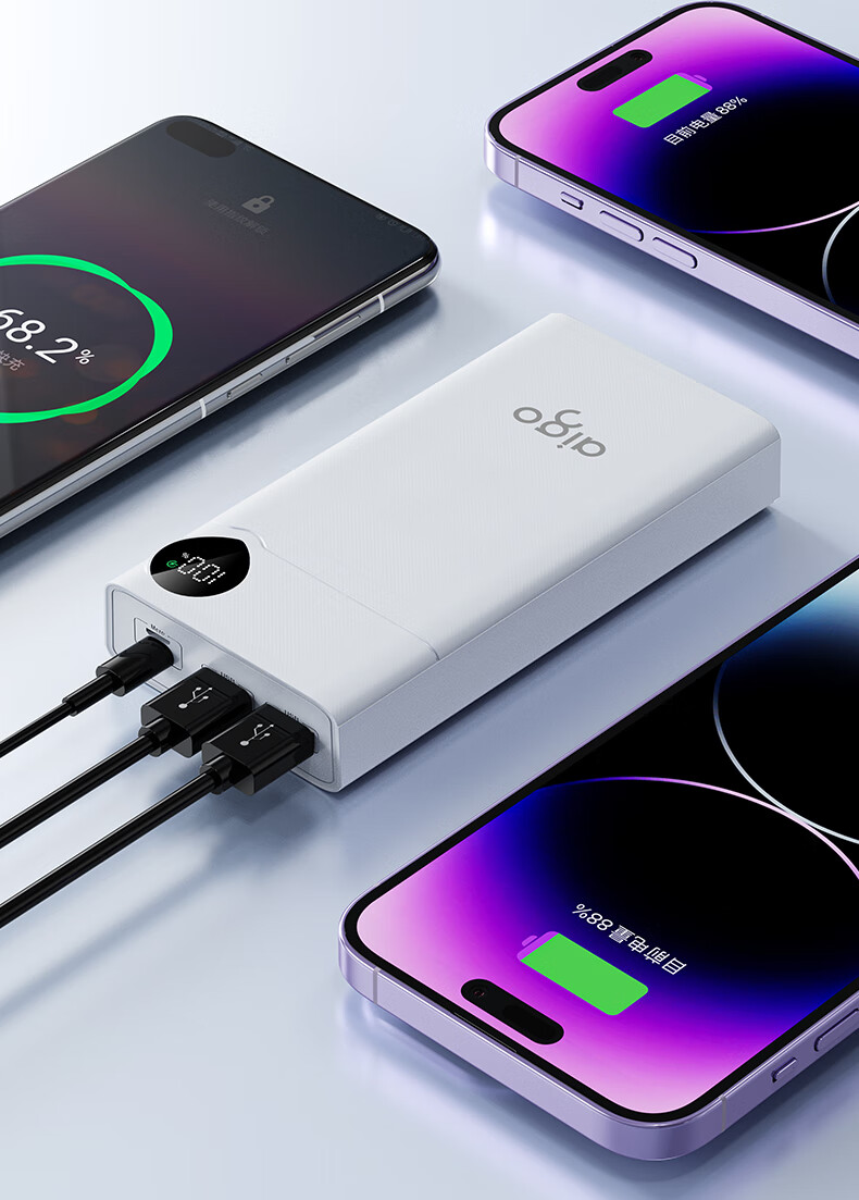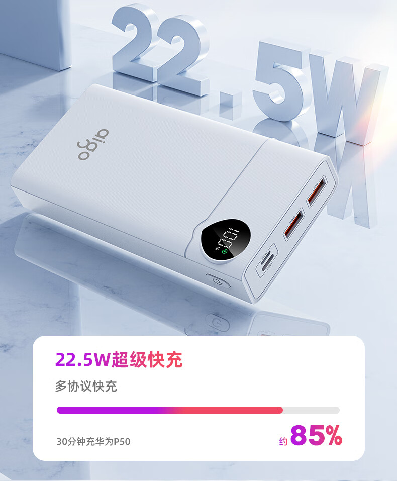 爱国者F20000PD充电宝20000毫安大容量Type-C快充22.5W迷你随身移动电源可上飞机 白色