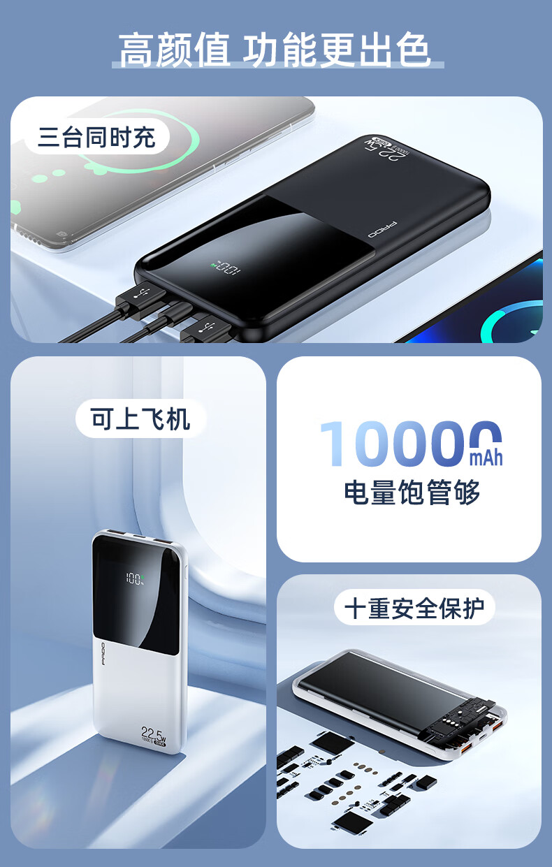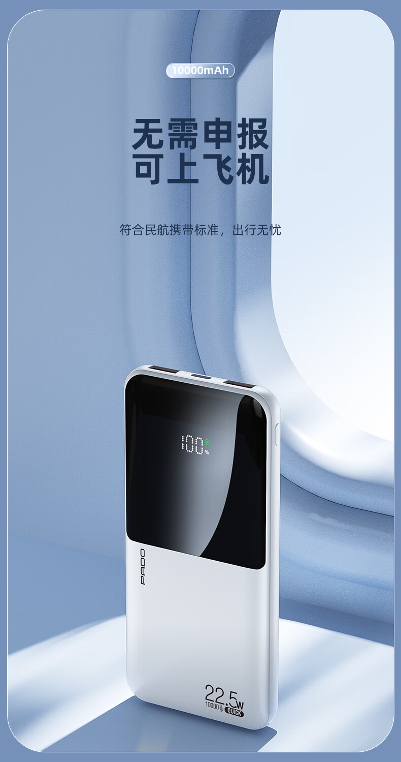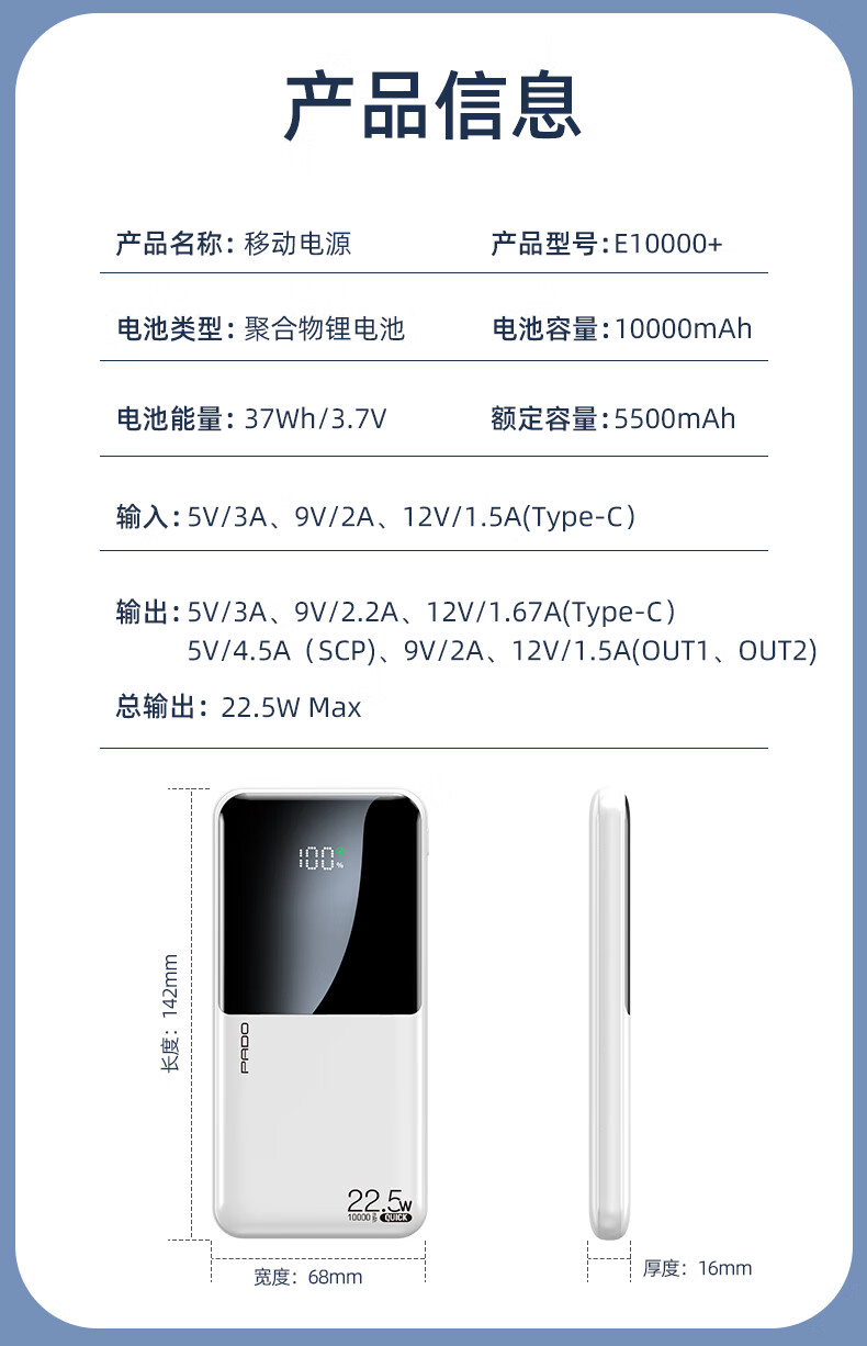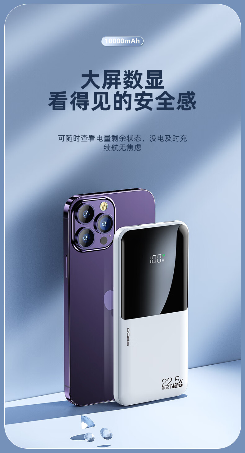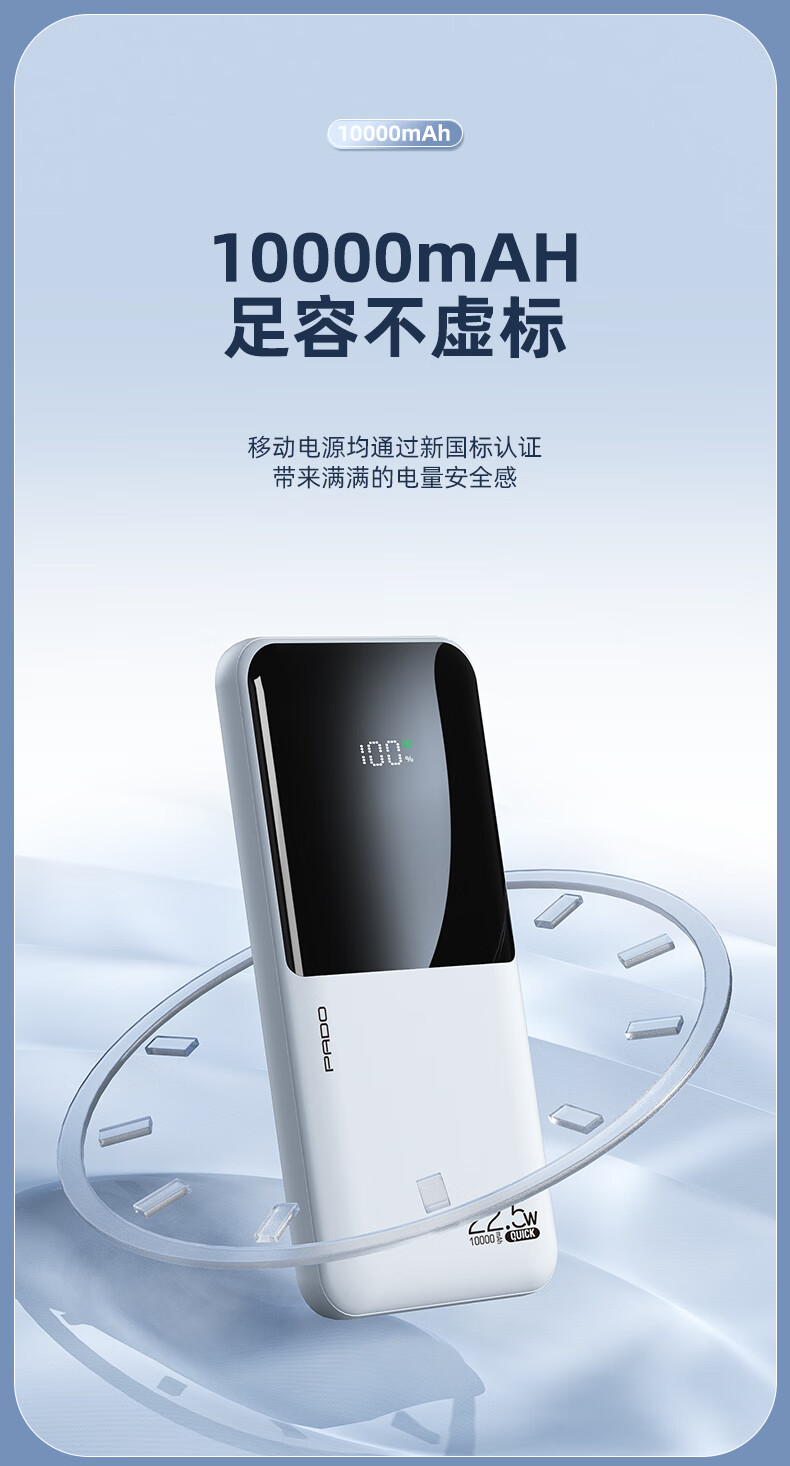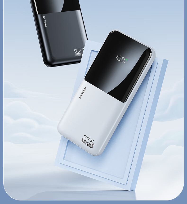 半岛铁盒爱国者充电宝E10000升级版PD20W10000毫安大屏数显22.5W双向快充 白色
