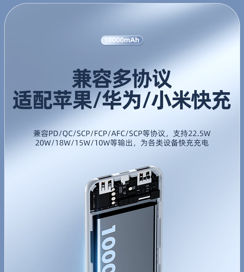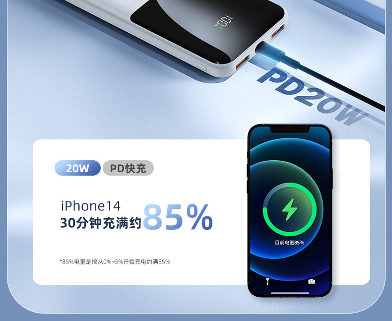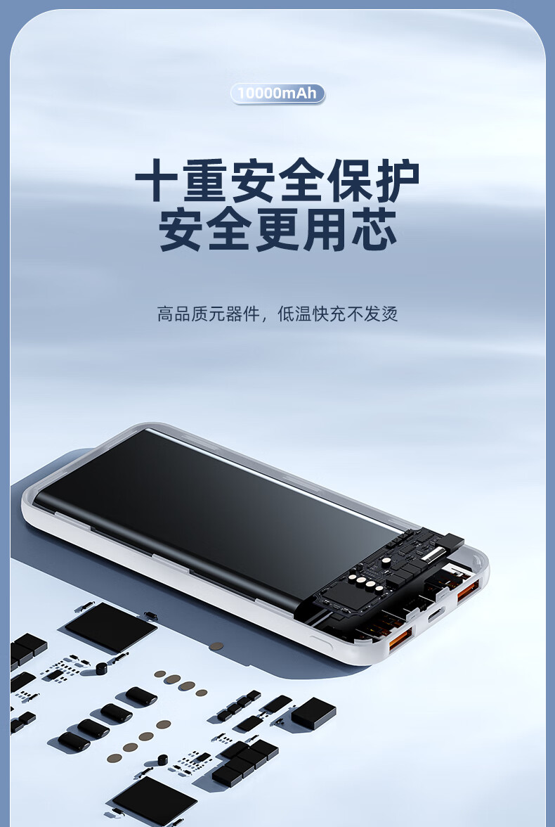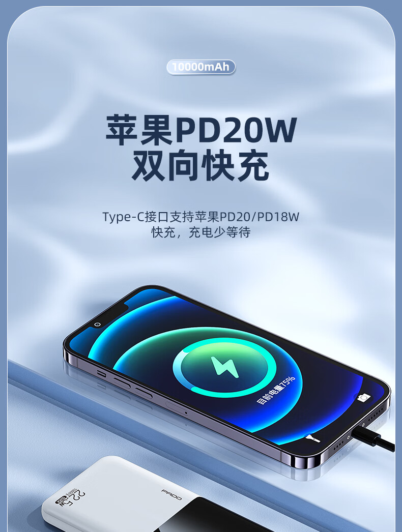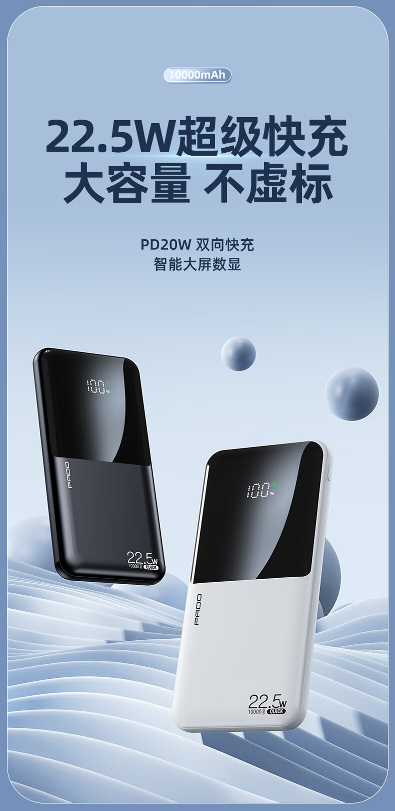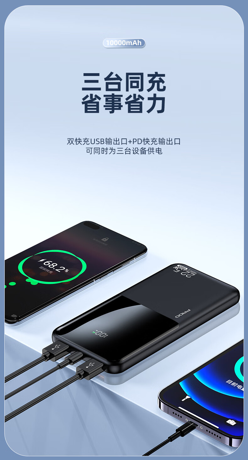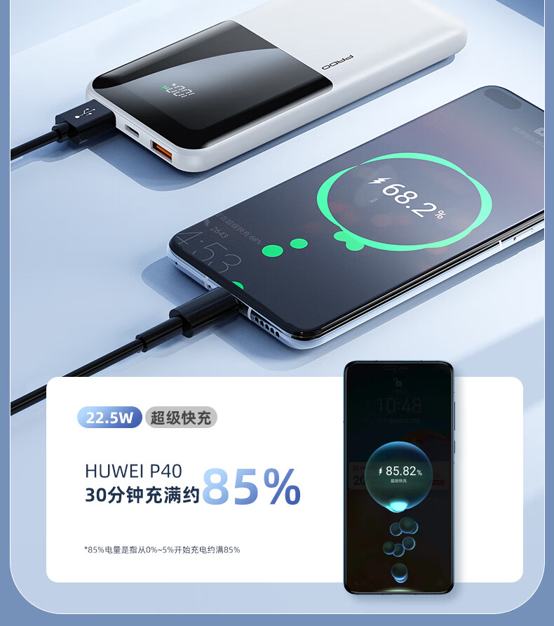 半岛铁盒爱国者充电宝E10000升级版PD20W10000毫安大屏数显22.5W双向快充 白色