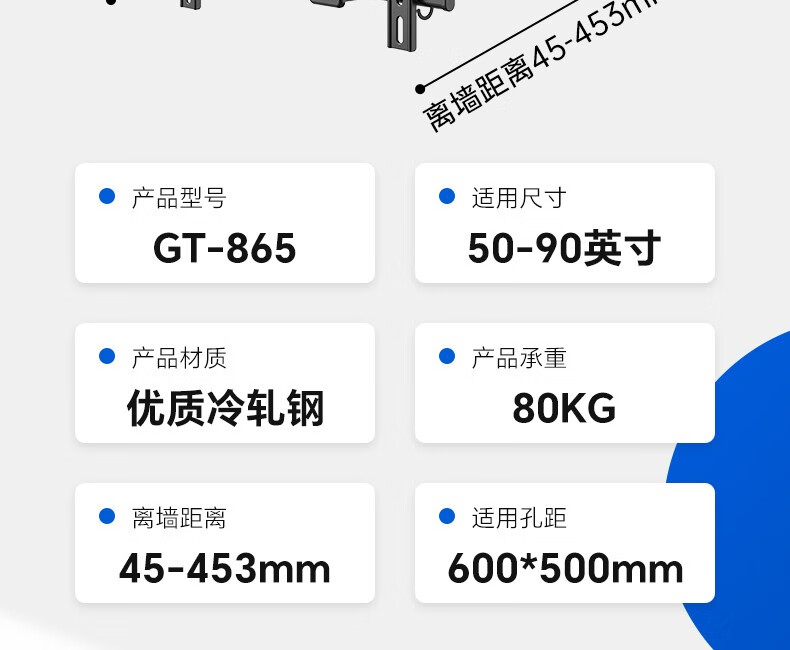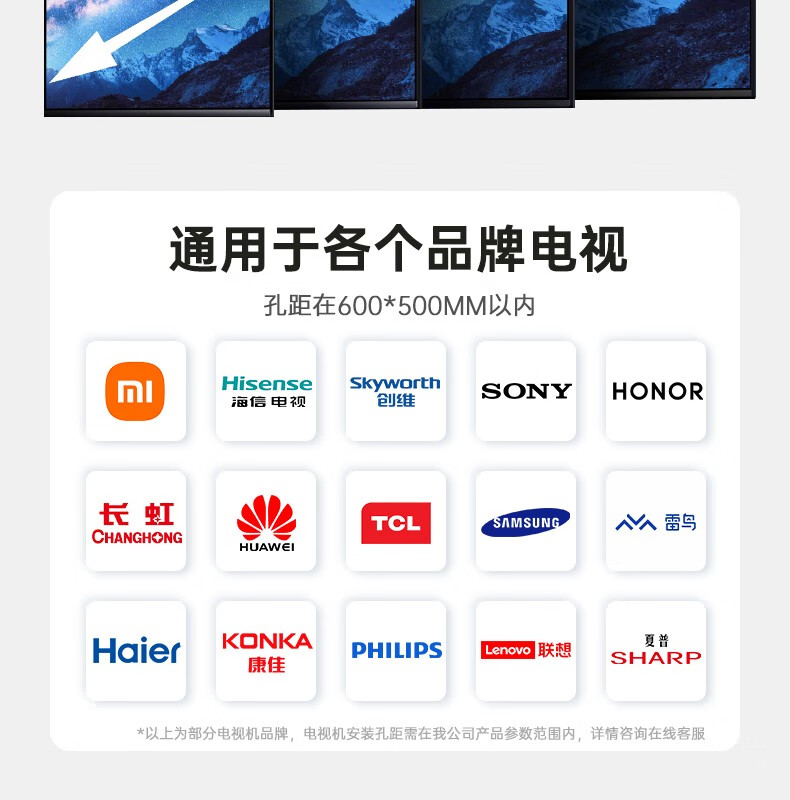 贝石 电视机挂架电视支架伸缩旋转壁挂架通用小米创维海信康佳华为智慧屏等电视架50-86英寸单位:台 黑色