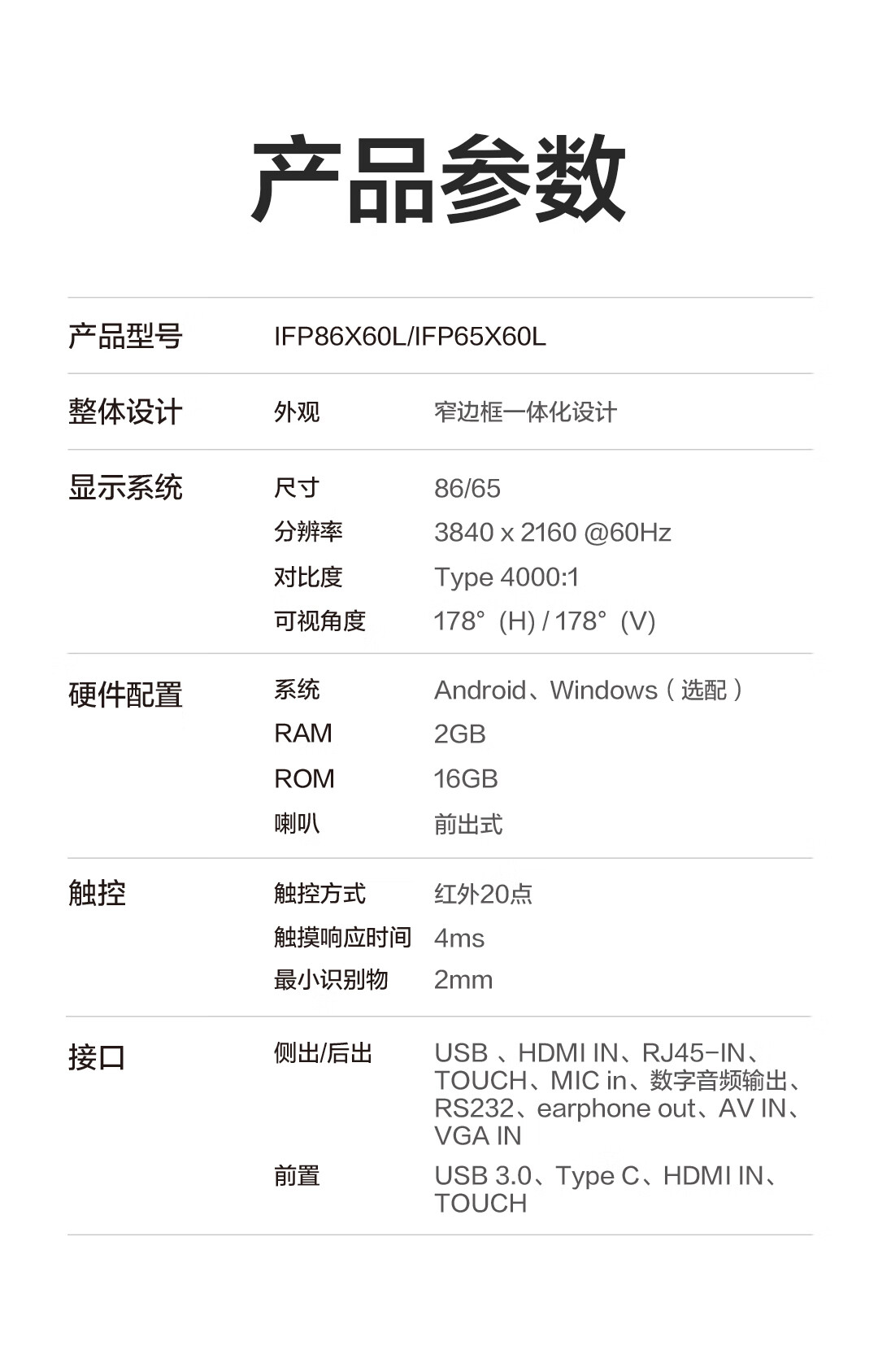 TCL智慧教育平板IFP86X60L (内含i5 8+256) 单位:台 黑色