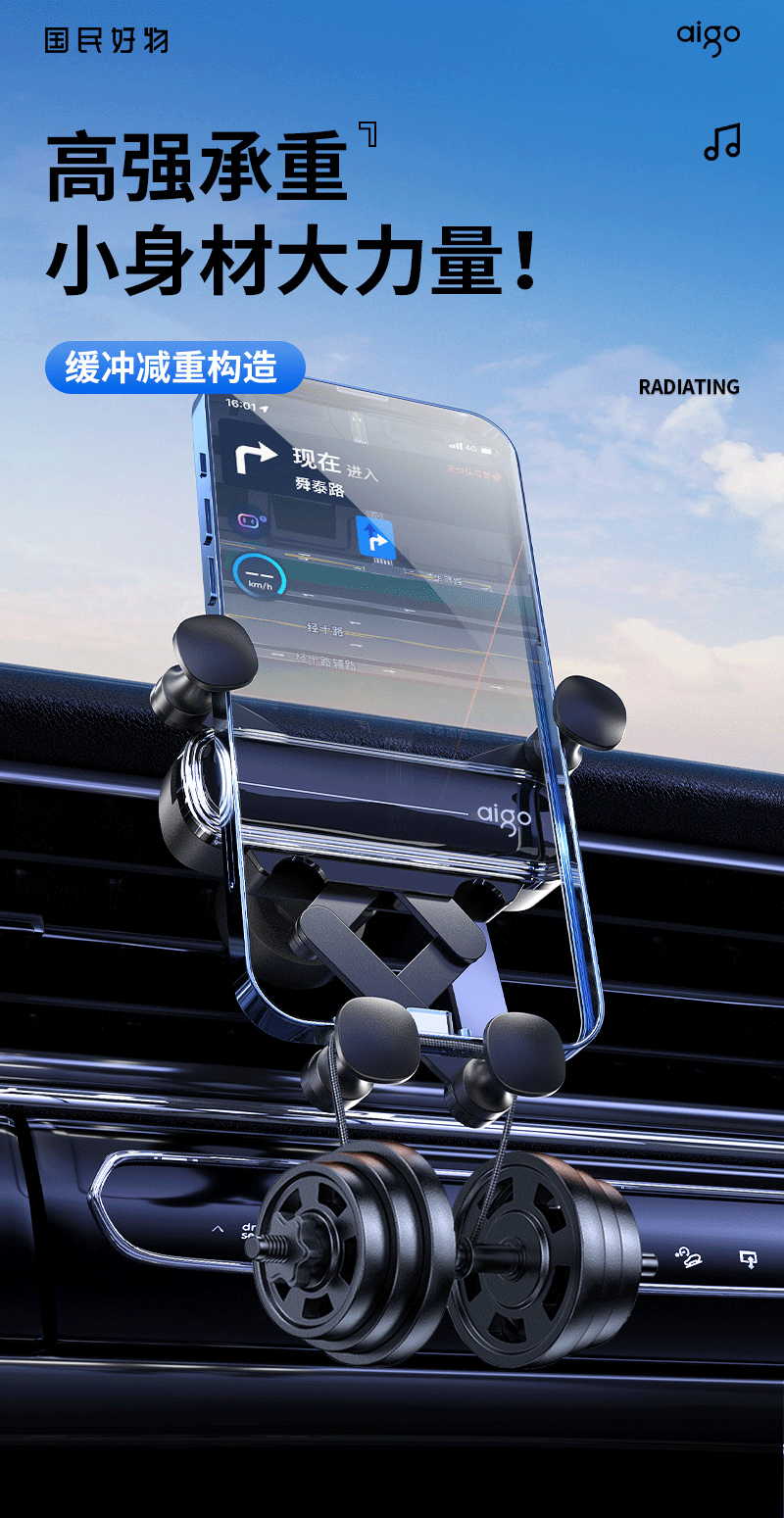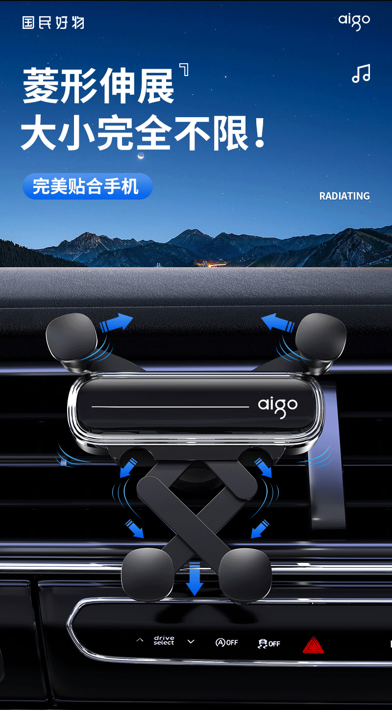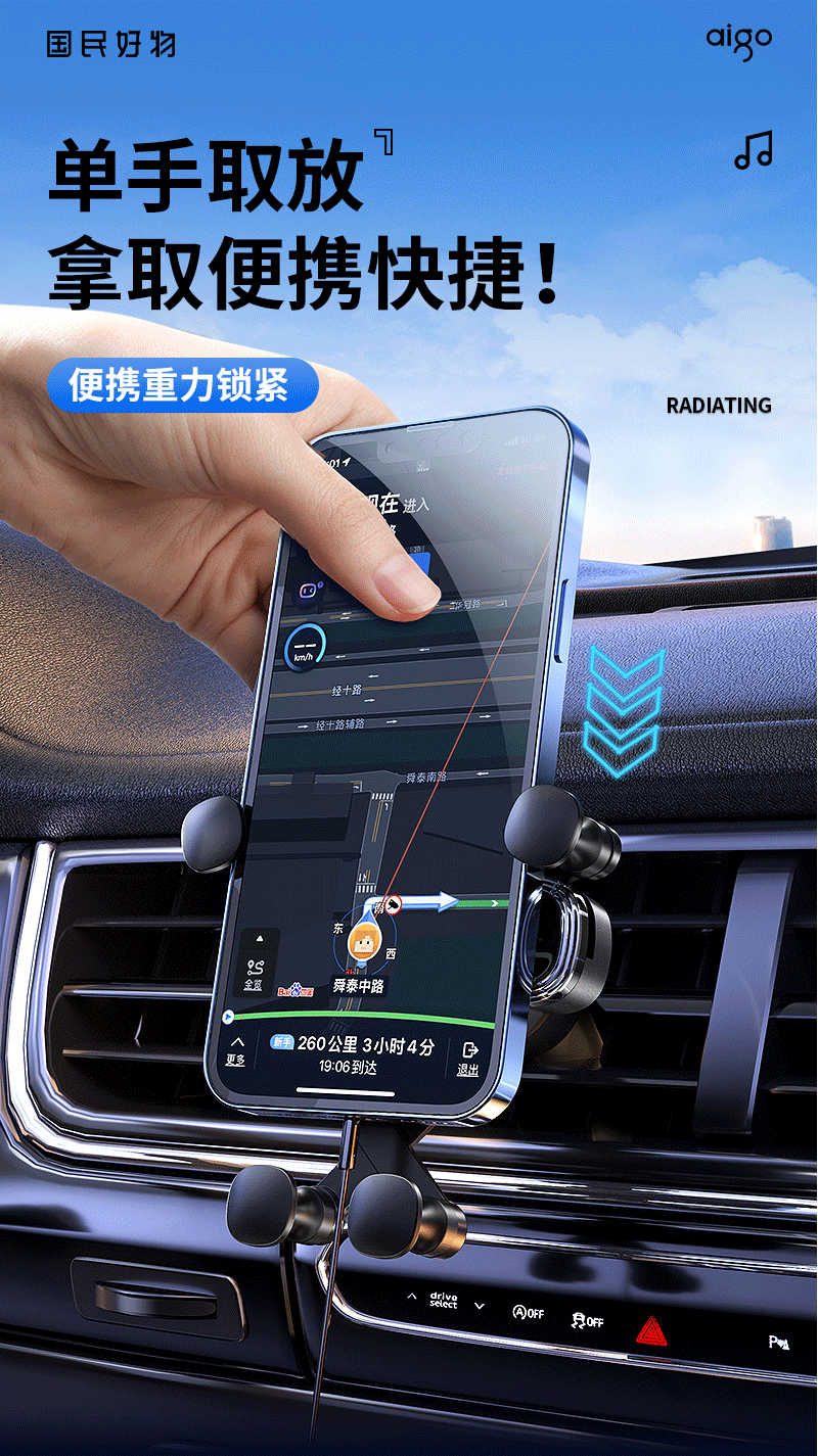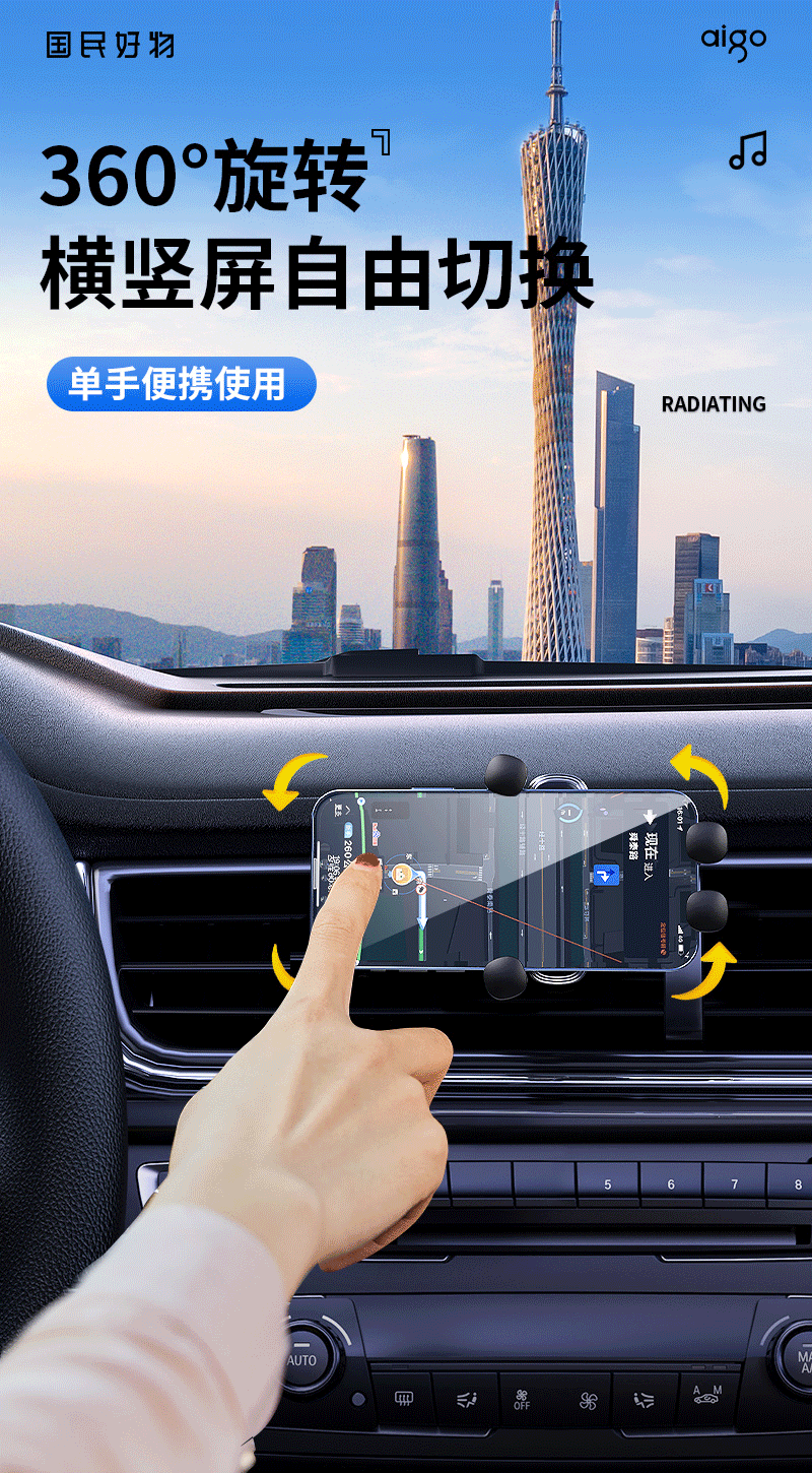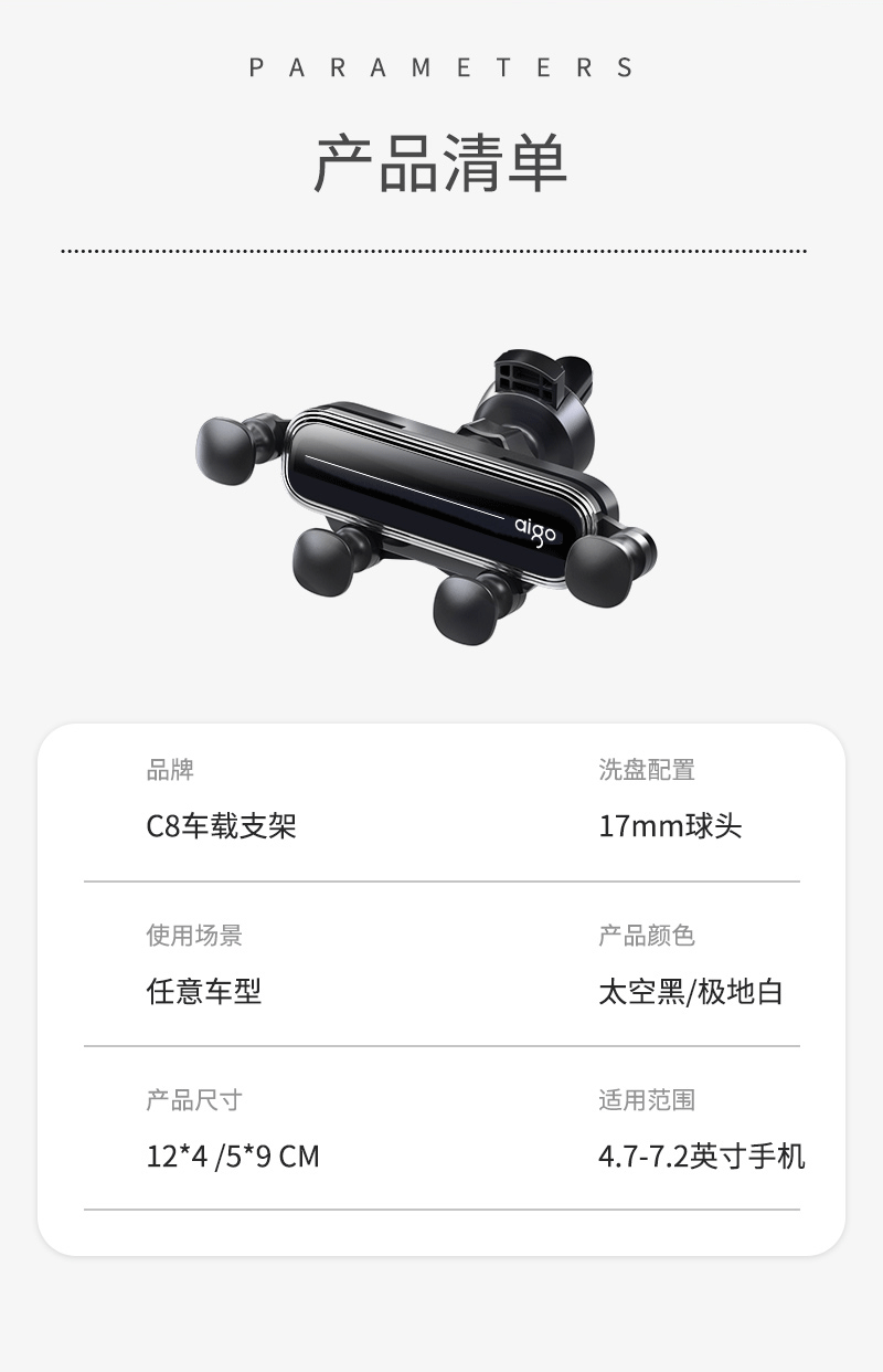 爱国者C8车载手机支架 汽车导航支架出风口固定器 汽车用品车内饰品小件 黑色