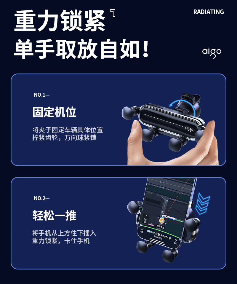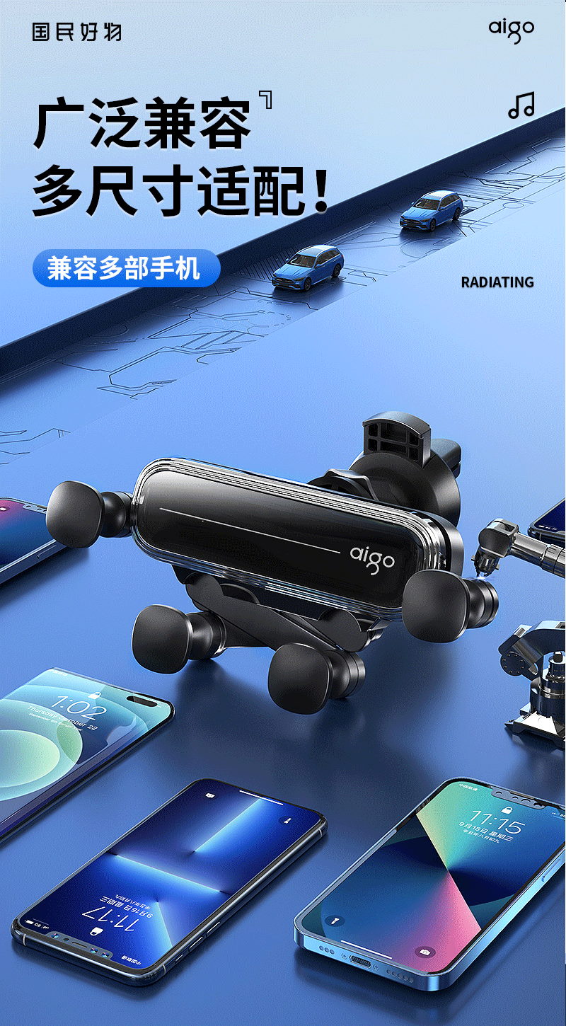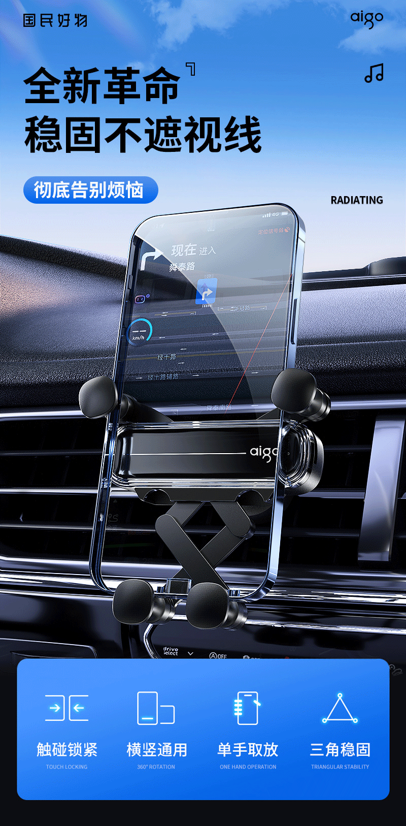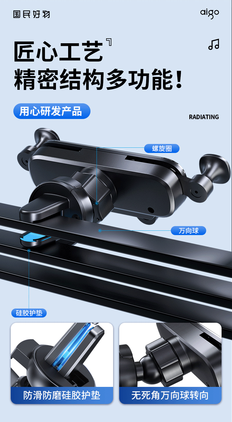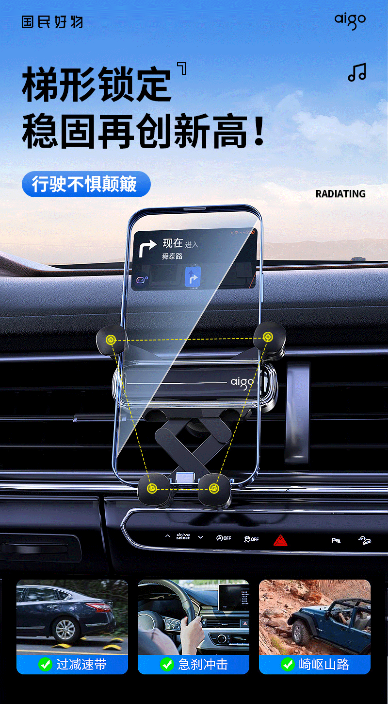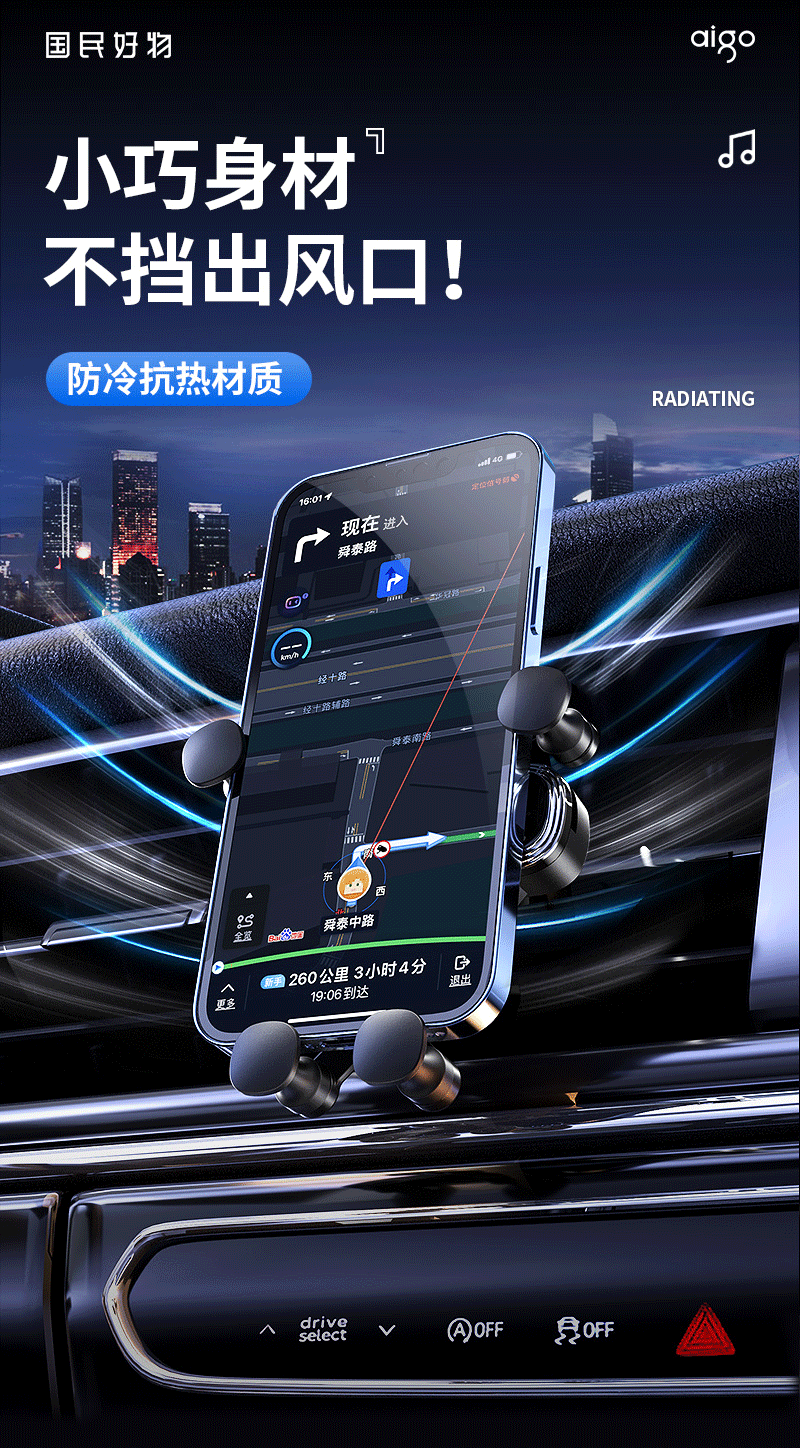 爱国者C8车载手机支架 汽车导航支架出风口固定器 汽车用品车内饰品小件 黑色