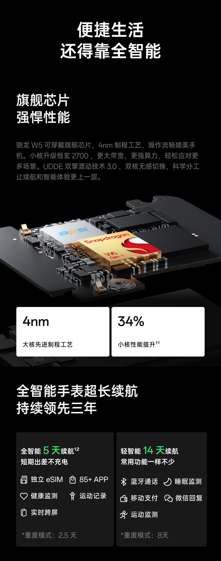OPPO Watch 4 Pro全智能手表 男女运动手表电话手表(含贴膜两片装) 极夜黑