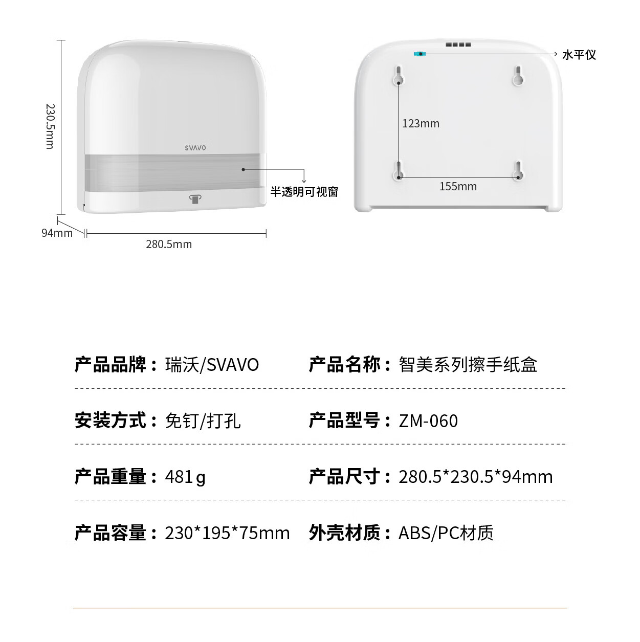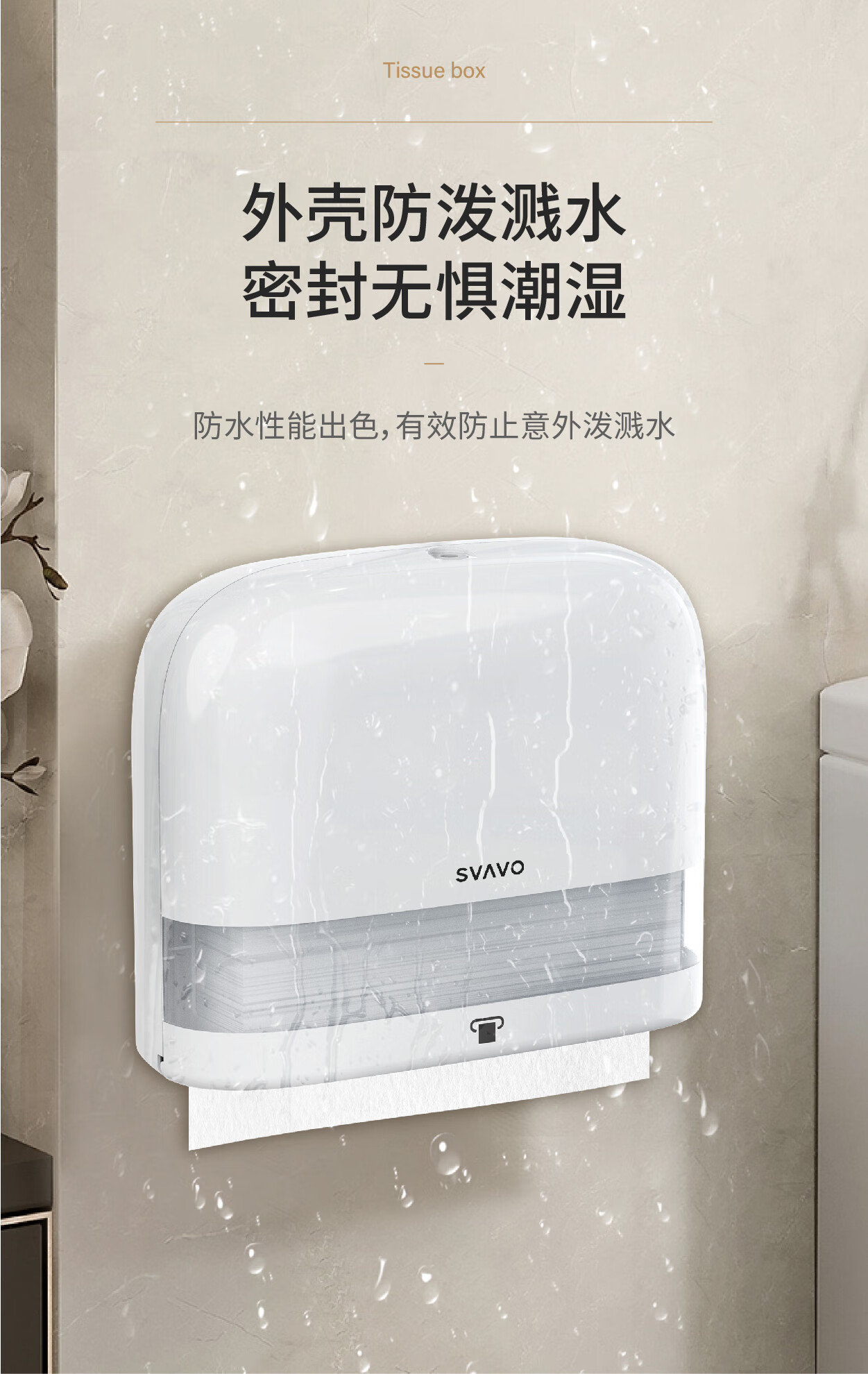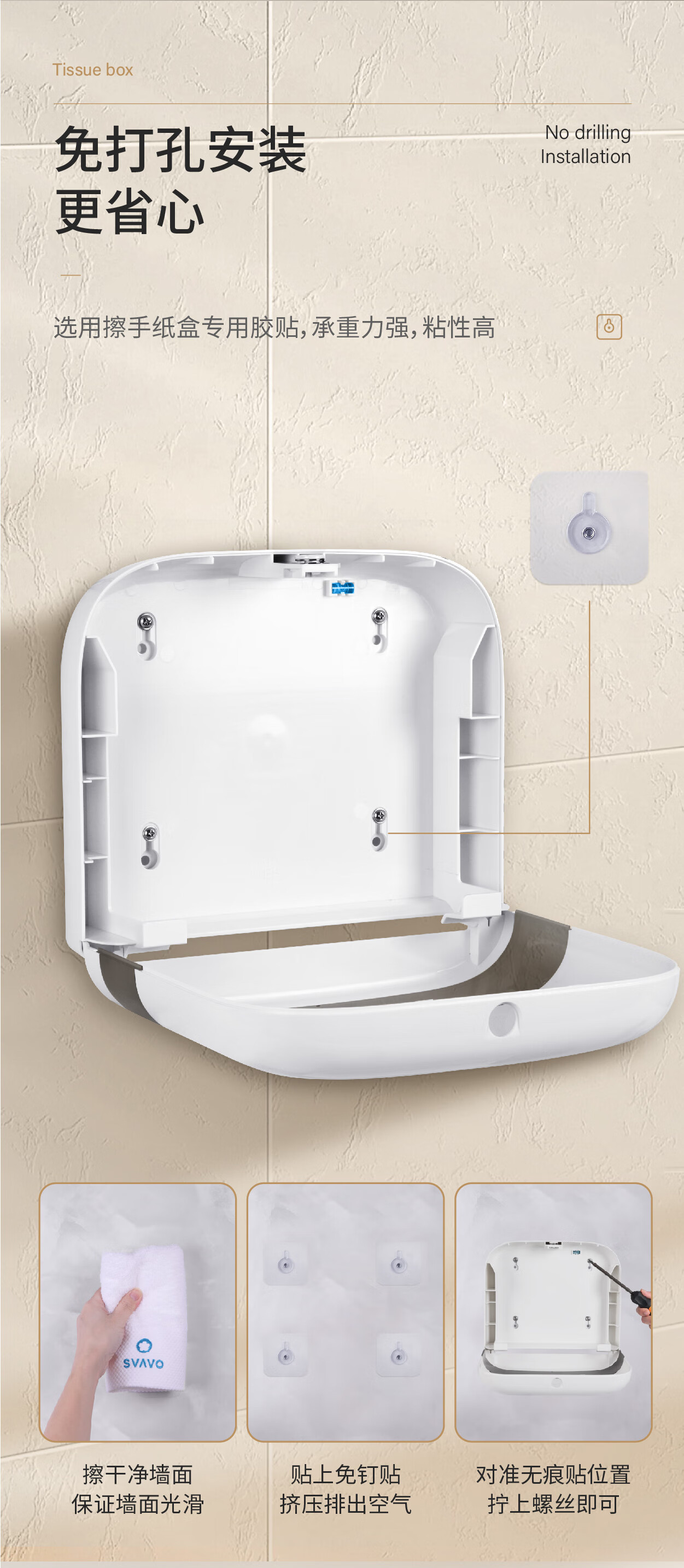 瑞沃(SVAVO)擦手纸巾盒壁挂式免打孔 ZM-060(个) 白色