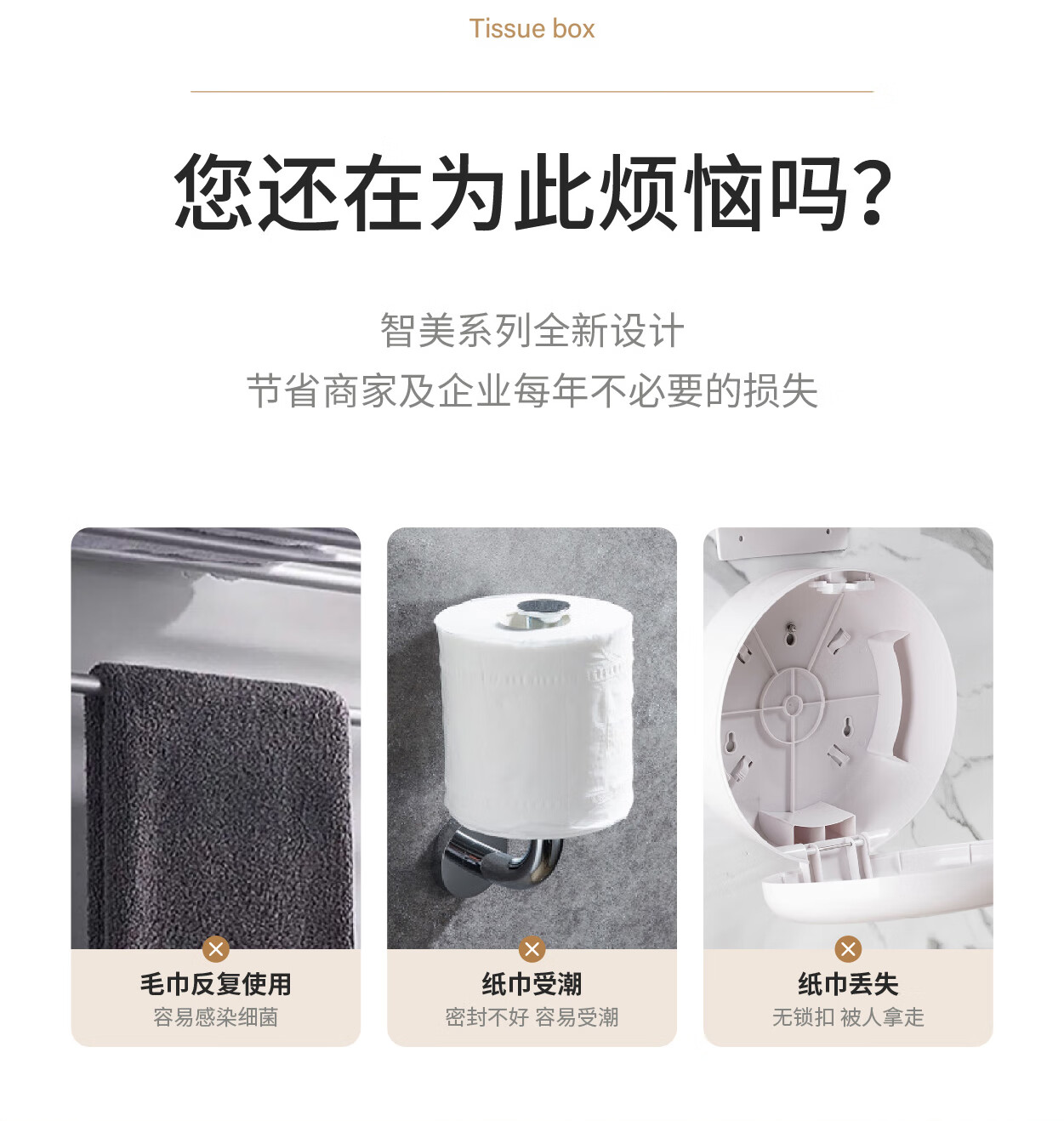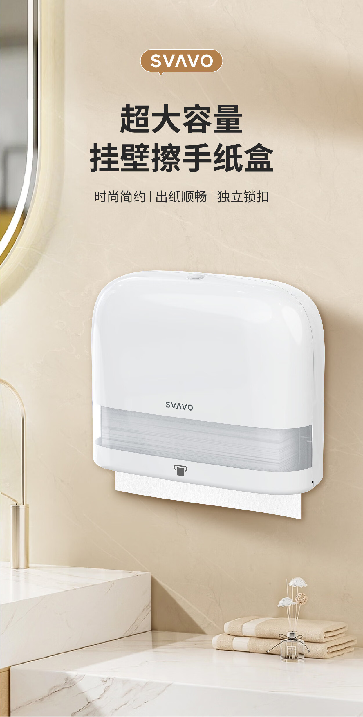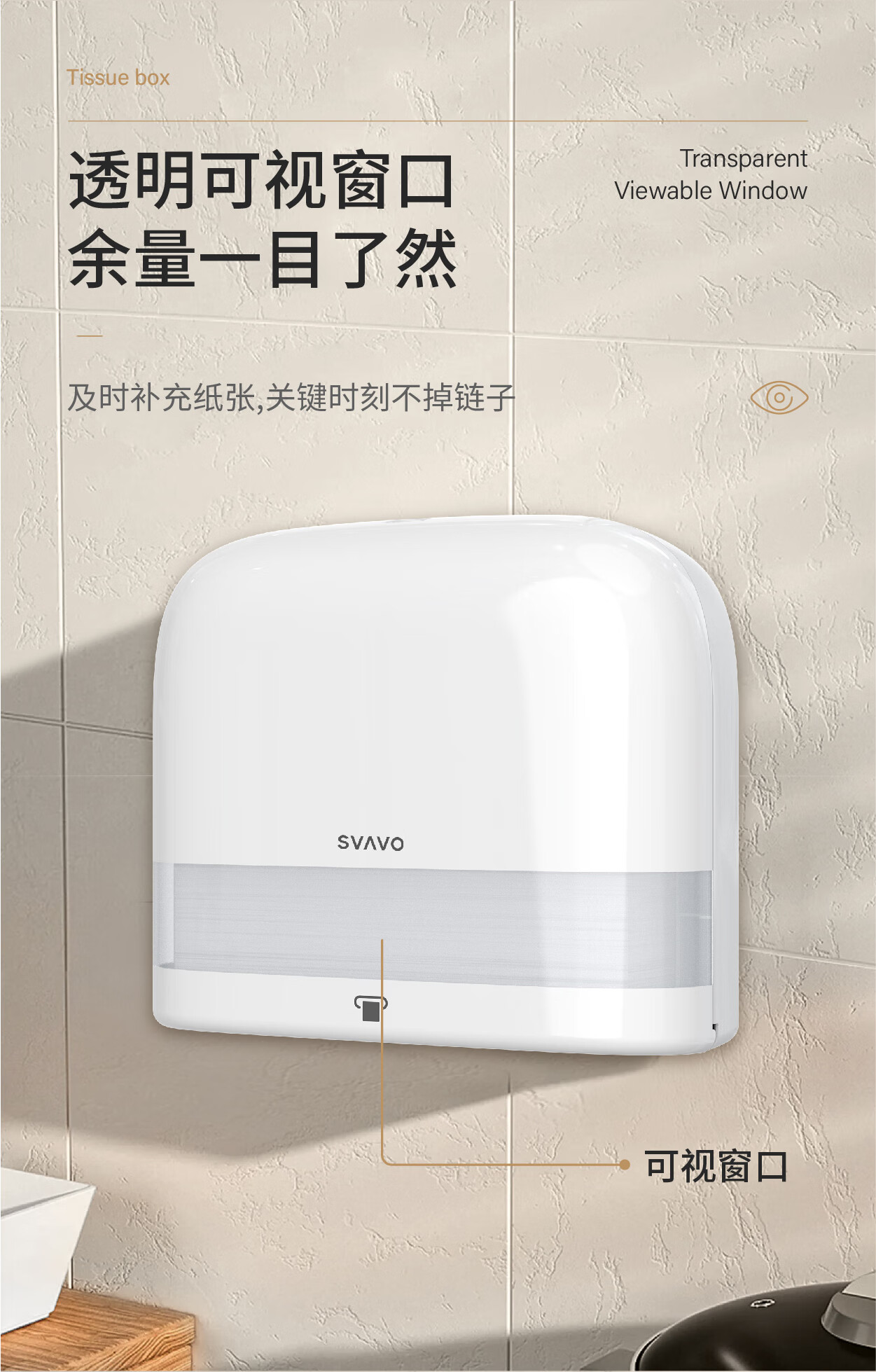 瑞沃(SVAVO)擦手纸巾盒壁挂式免打孔 ZM-060(个) 白色