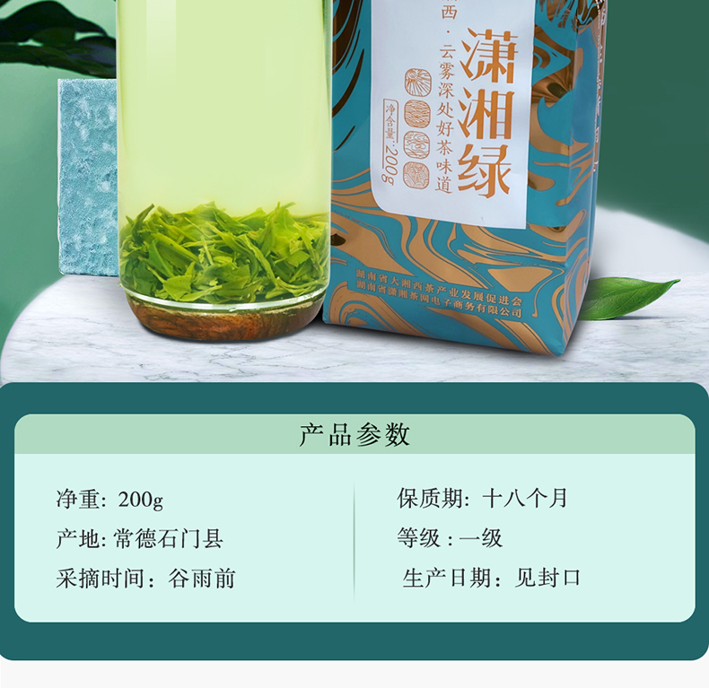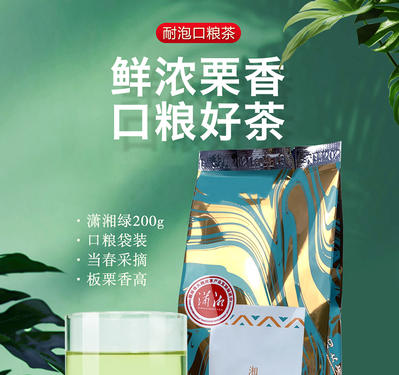 潇湘牌袋装浓香耐泡石门银峰毛尖200克(单位:袋) 灰绿色