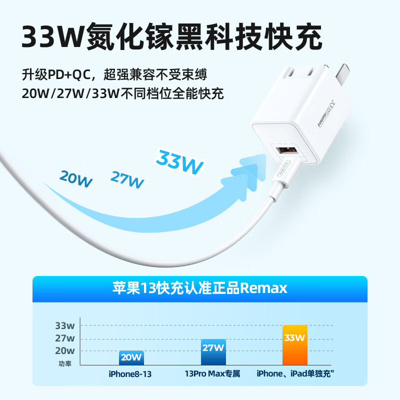 remax苹果氮化镓充电器 iphone14快充套装33W充电头PD数据线单位:个 白色