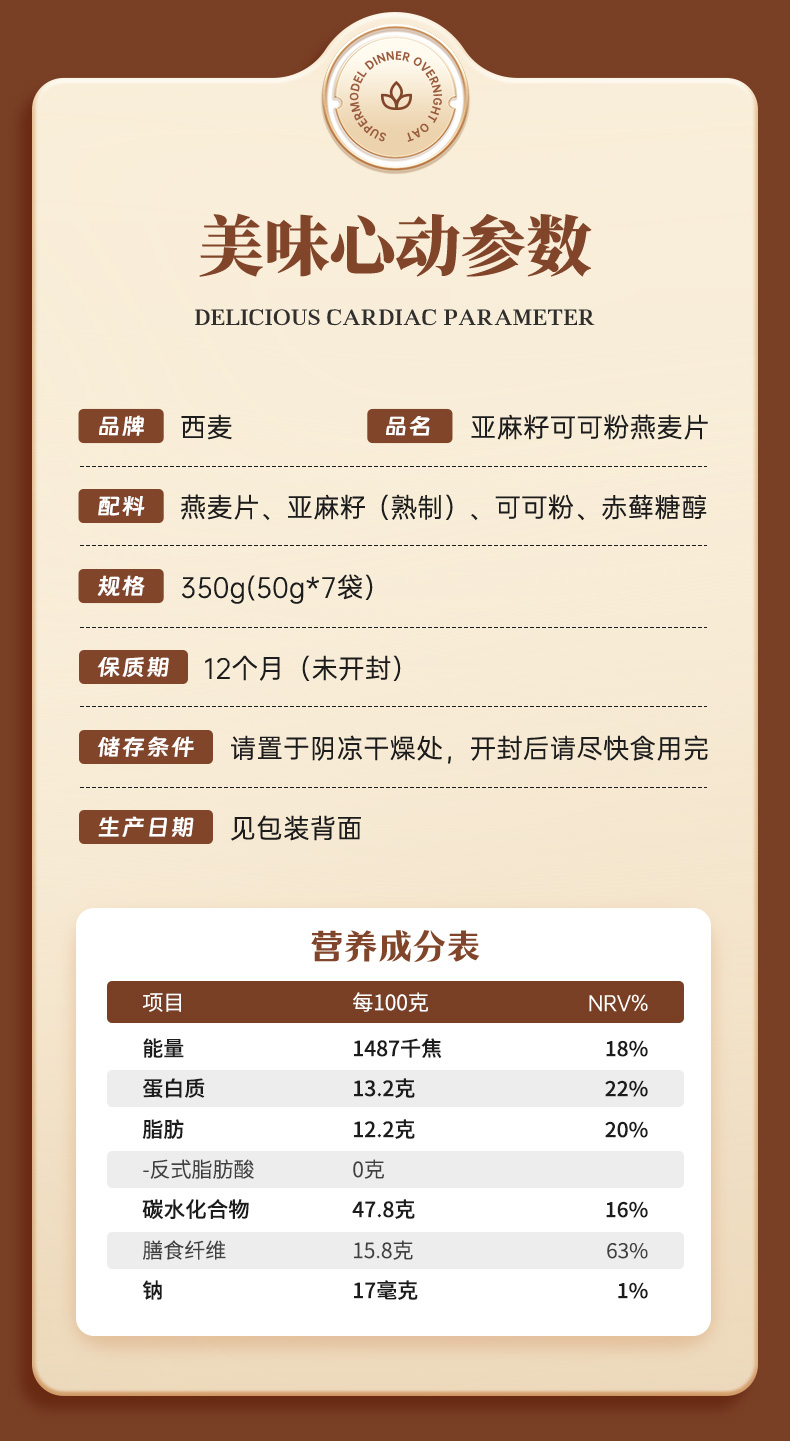 西麦 亚麻籽可可粉燕麦片350g*2袋(单位:袋) 白色
