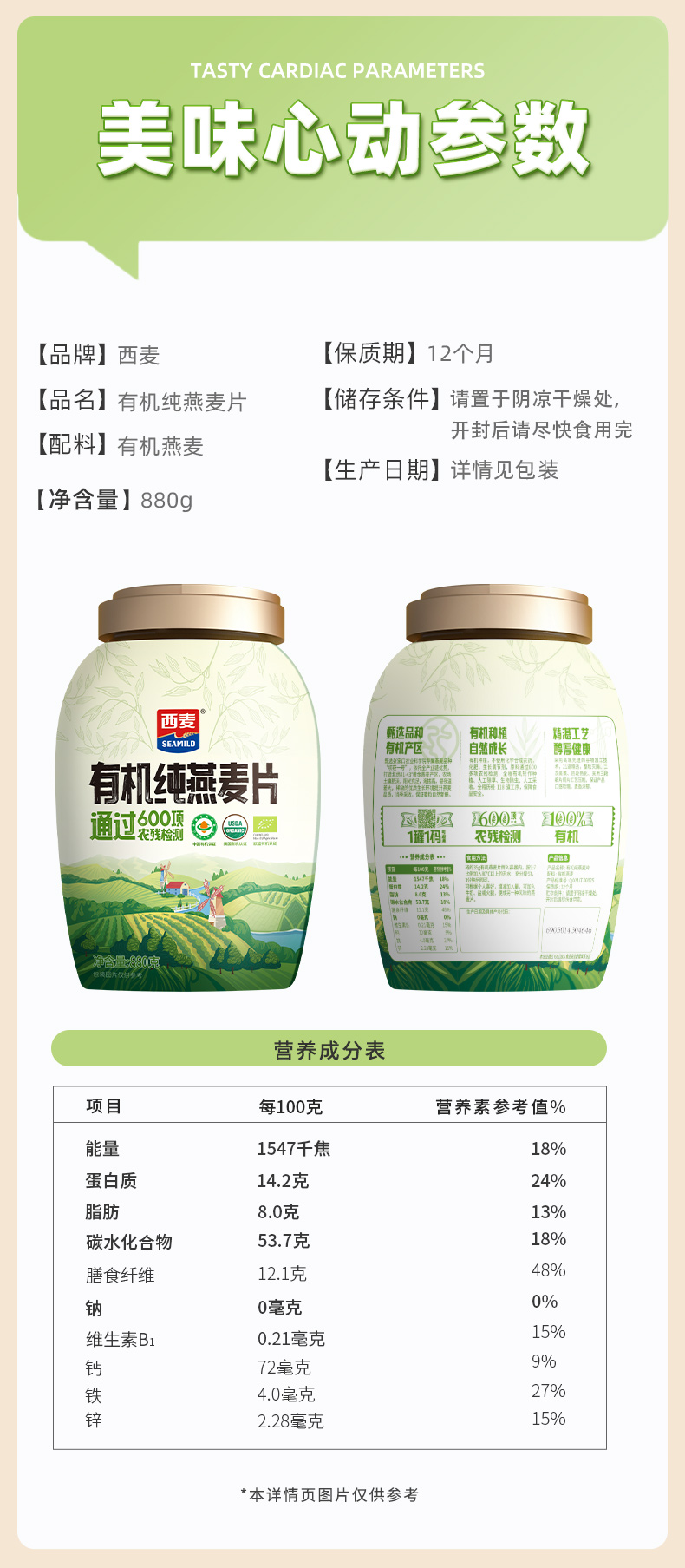 西麦有机燕麦片(大片)880g*2罐(单位:罐) 白色