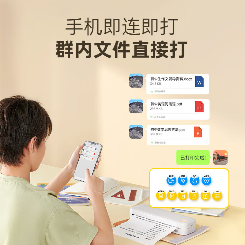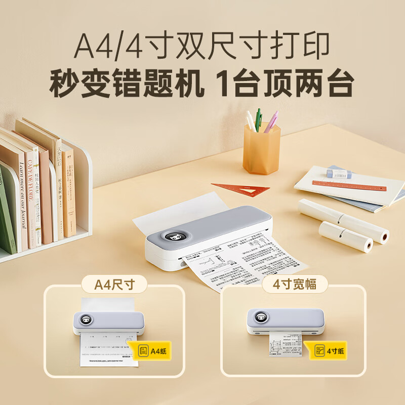 作业帮喵喵机A4高清错题学习打印机错题整理神器无墨便携桌面热敏打印机家用 F2S标准版 单位:台 白色