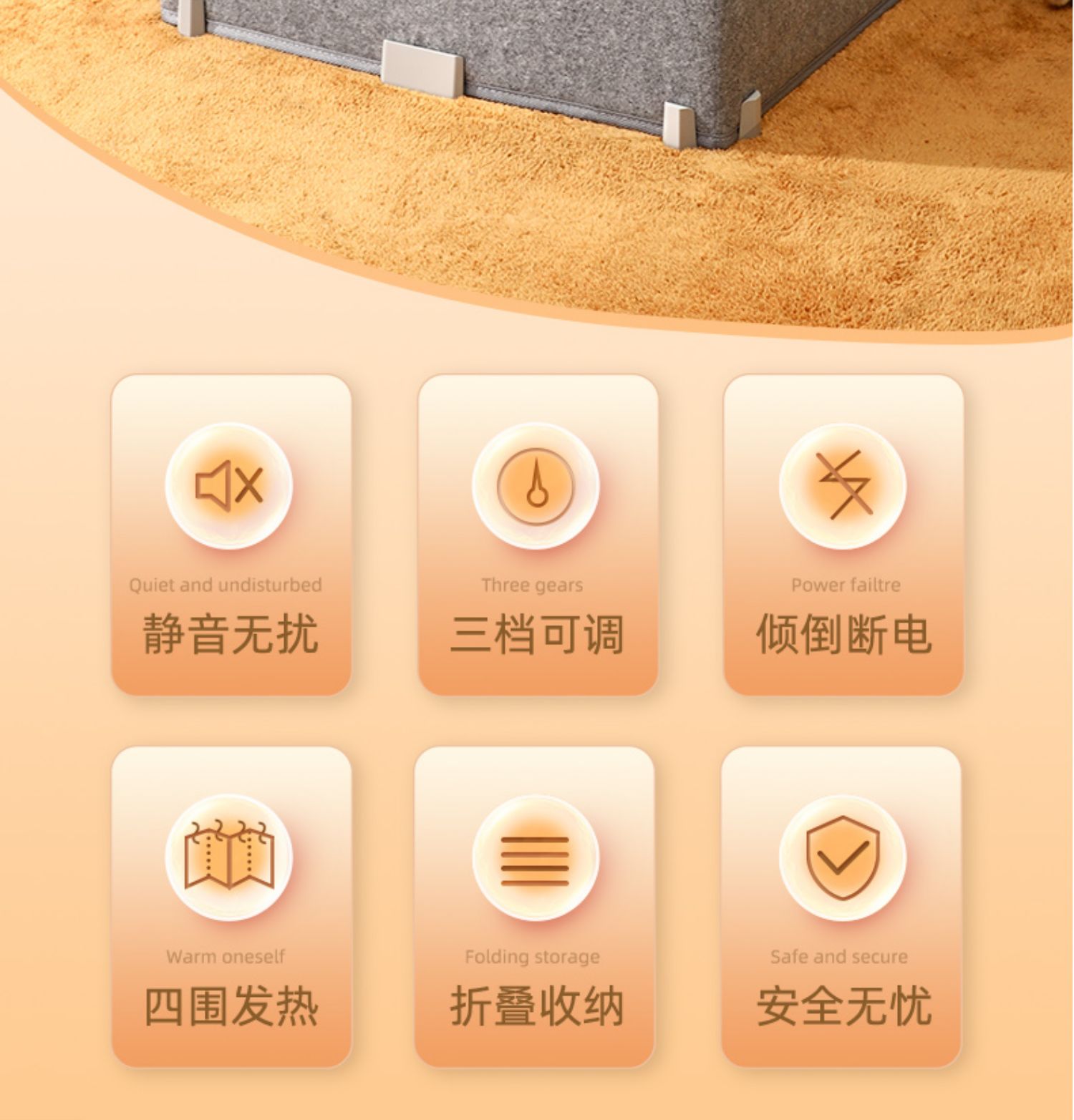 机乐堂便携取暖器(三折围)NJ3F-160H NJ3F-160H(单位:个) 灰色