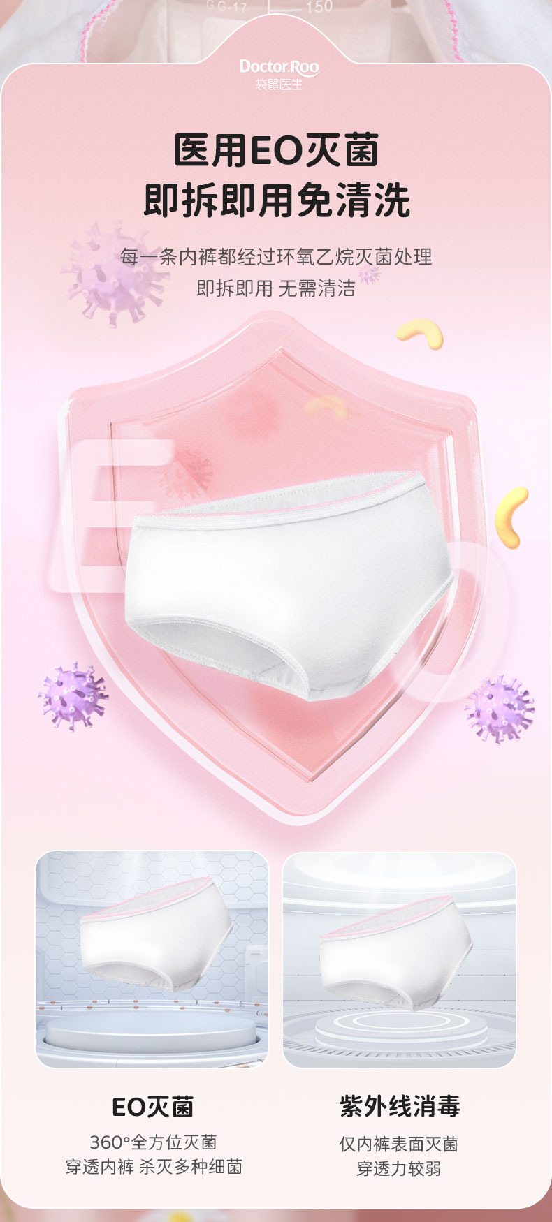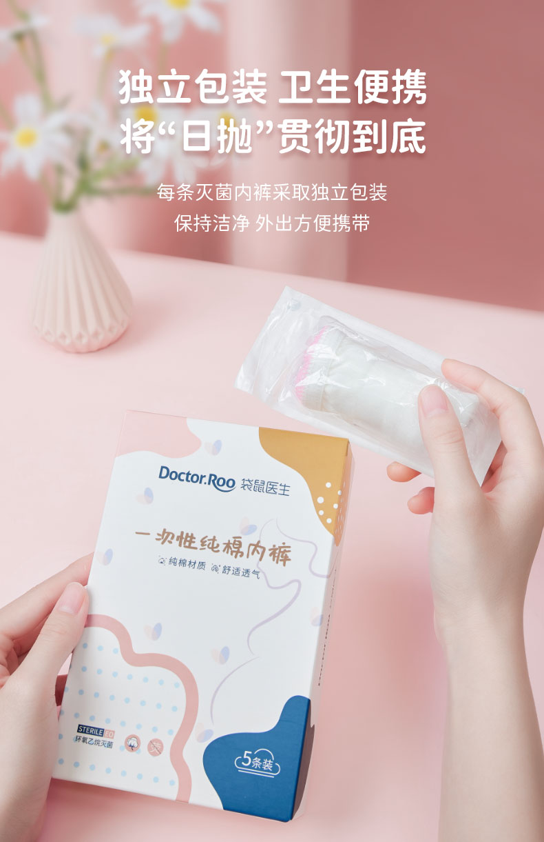 袋鼠医生 一次性纯棉内裤5条装M码 1条/包 5包/盒*5盒 M
